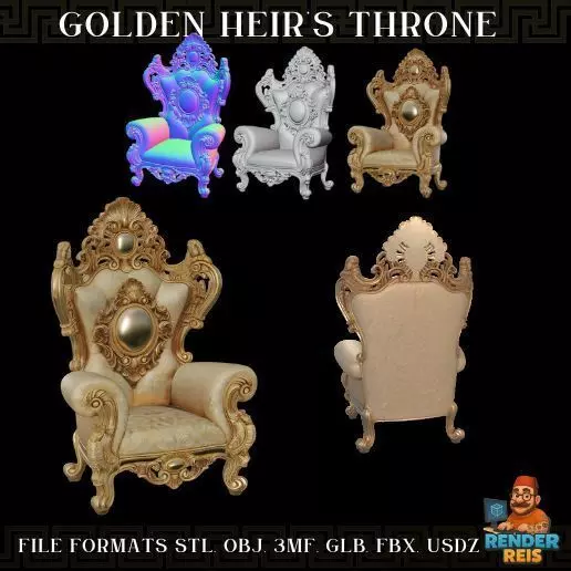 For custom designs, feel free to contact me.This model presents the Golden Heir’s Throne, a Baroque chair of elegance and grandeur worthy of kings and queens. Every curve, carving, and rounded ornament makes this a true masterpiece in the world of 3D printing. Perfect for miniature dioramas, tabletop decorations, or artistic projects.