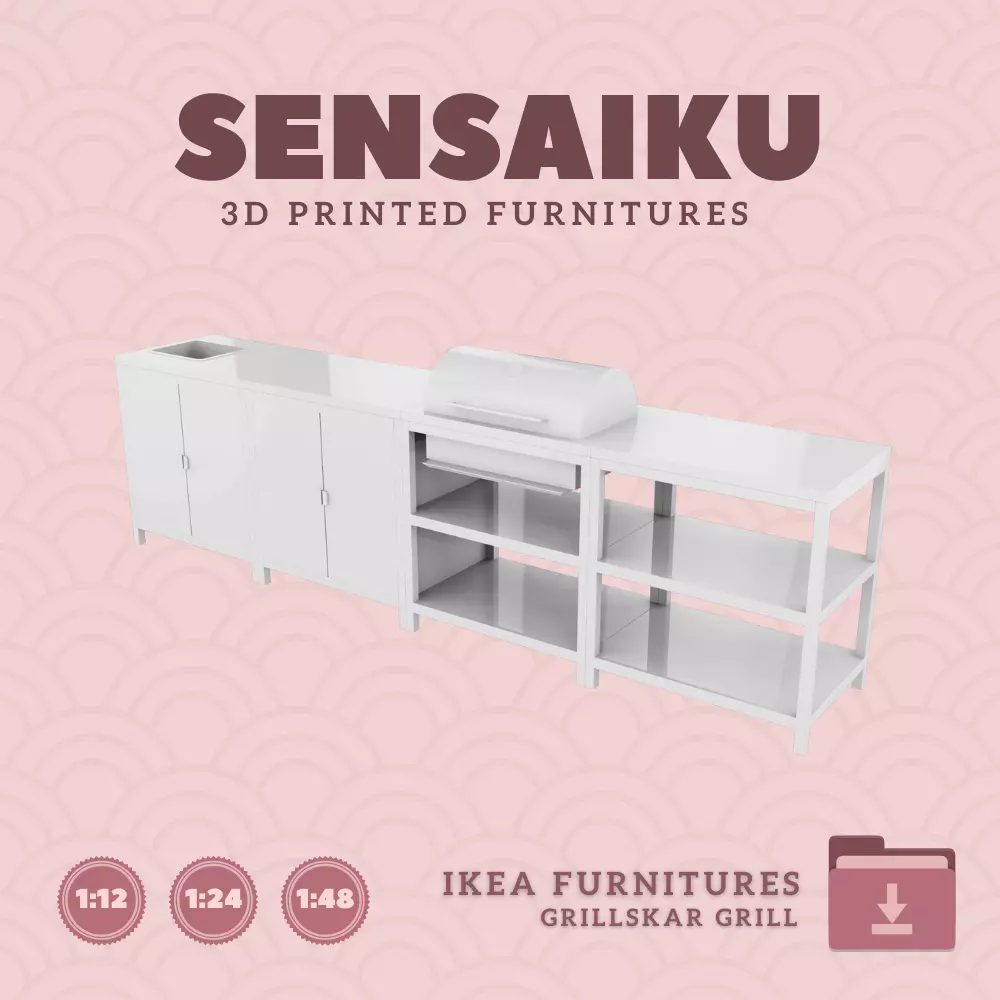 Name: GRILLSKAR Grill with Sink Cabinet & Shelf UnitManufacturer - IKEARecommended Printer: Resin 3d PrinterSeries: Furniture Designers SeriesScale: 1:12, 1:24, 1:48