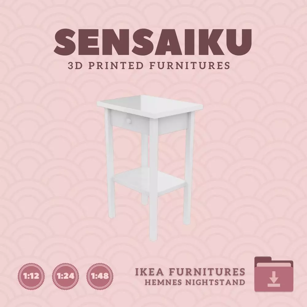 Name: HEMNES Side Table NightstandManufacturer - IKEARecommended Printer: Resin 3d PrinterSeries: Furniture Designers SeriesScale: 1:12, 1:24 & 1:48