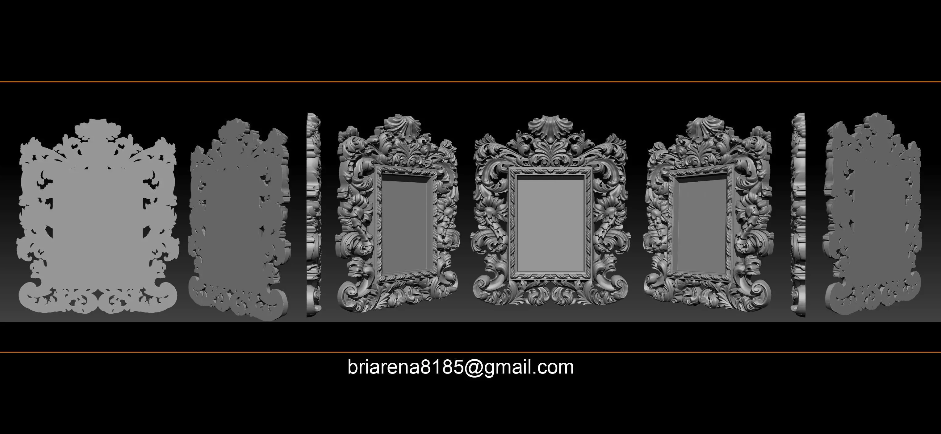 Mirror classical carved frame, ideal for a classic and luxurious interiors in the art style. This model created in Zbrush and have polygonal geometry. This 3d model is prepared to physical production by 3d printing, CNC machining,
