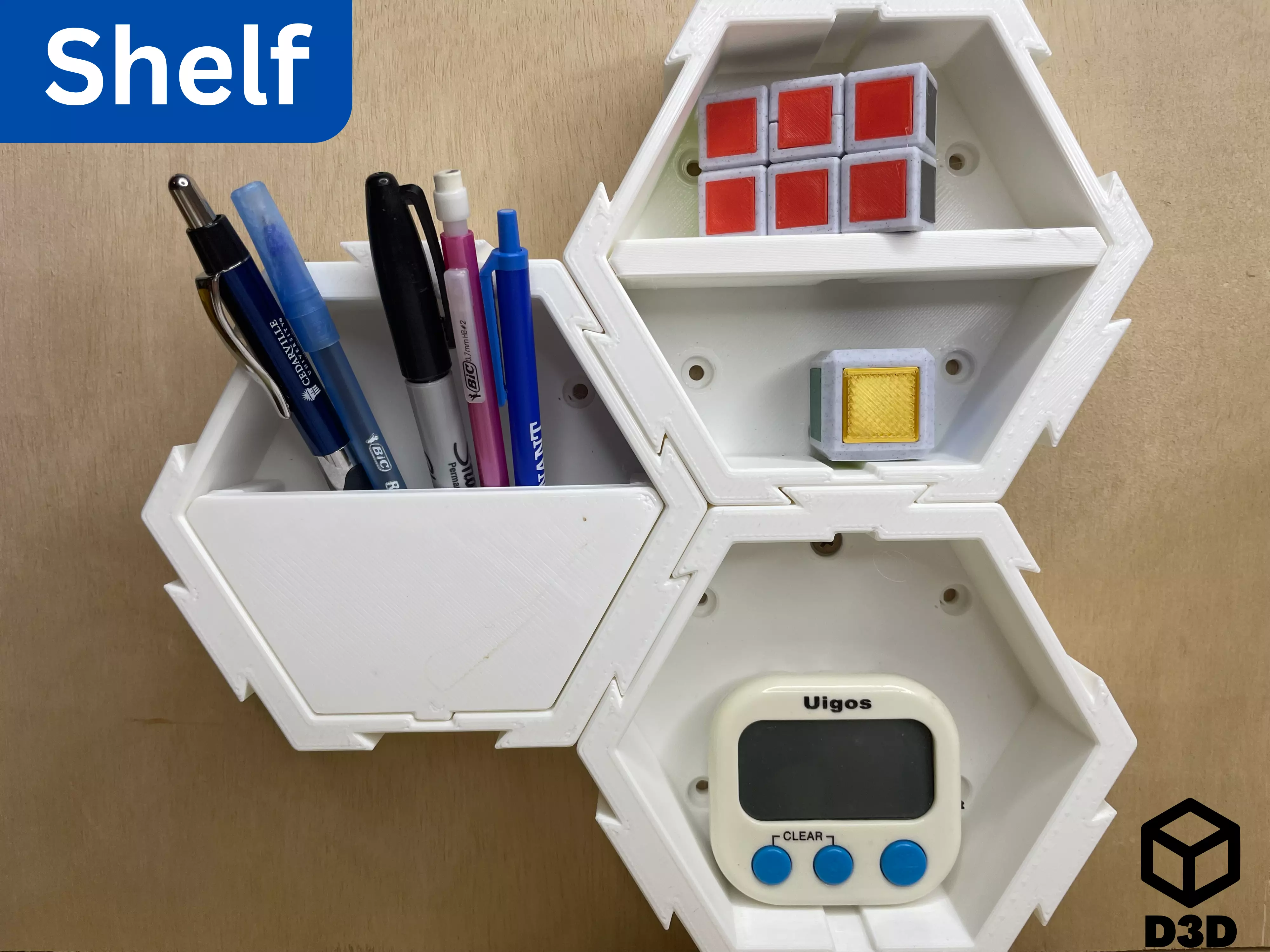 - Print as many shelves as needed for your storage requirements.