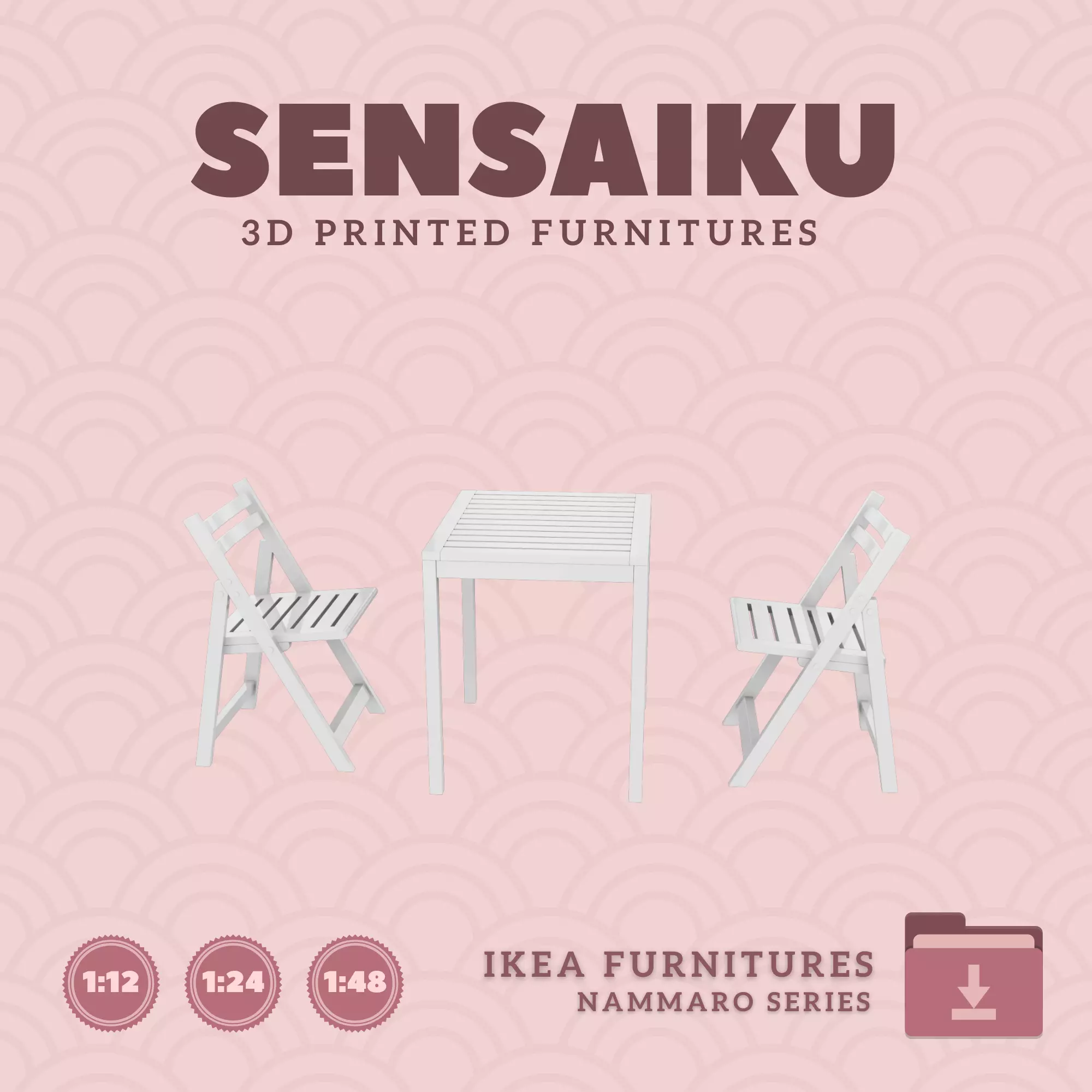 Name: 11. NAMMARO Table V1 and ChairsManufacturer - IKEARecommended Printer: Resin 3d PrinterSeries: Furniture Designers SeriesScale: 1:12, 1:24 & 1:483D Builder: Sensaiku