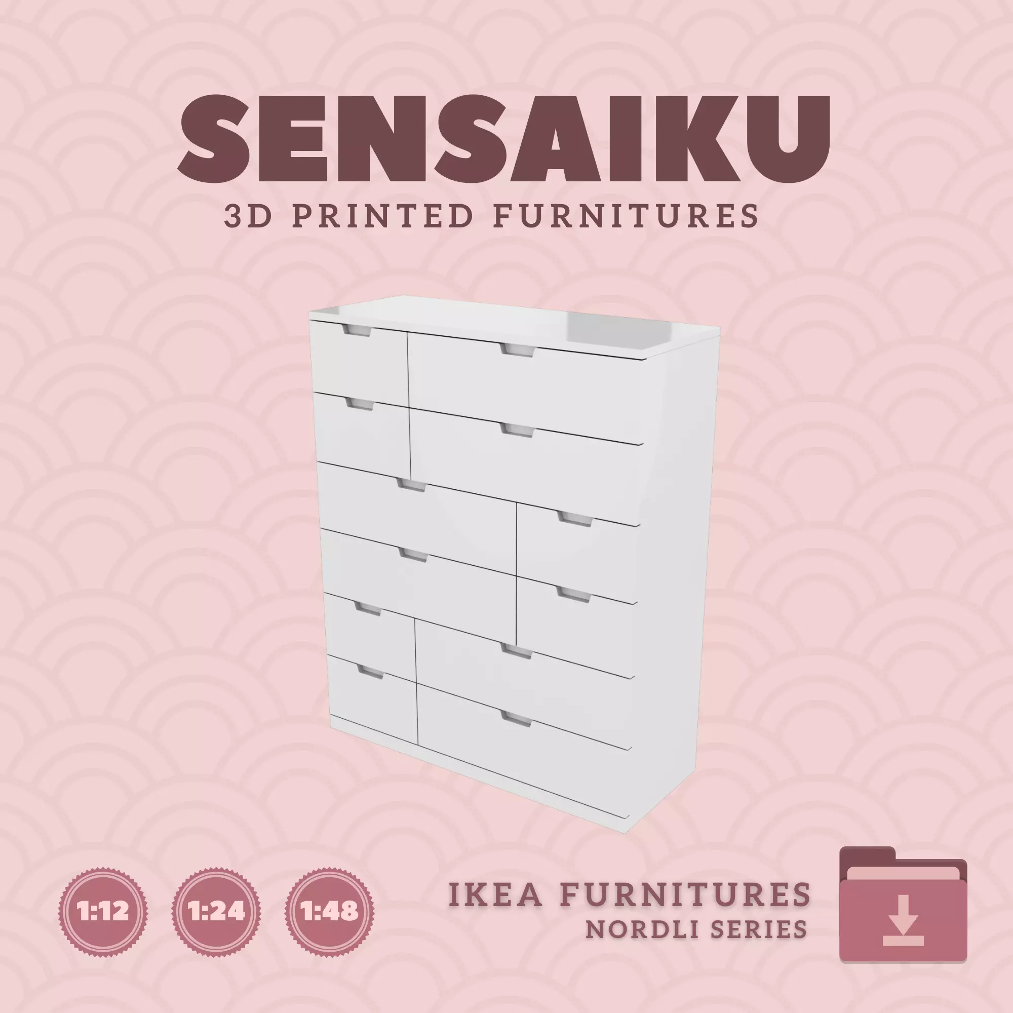 Name: 42. NORDLI 12-Drawer Chest V1Manufacturer - IKEARecommended Printer: Resin 3d PrinterSeries: Furniture Designers SeriesScale: 1:12, 1:24 & 1:483D Builder: Sensaiku