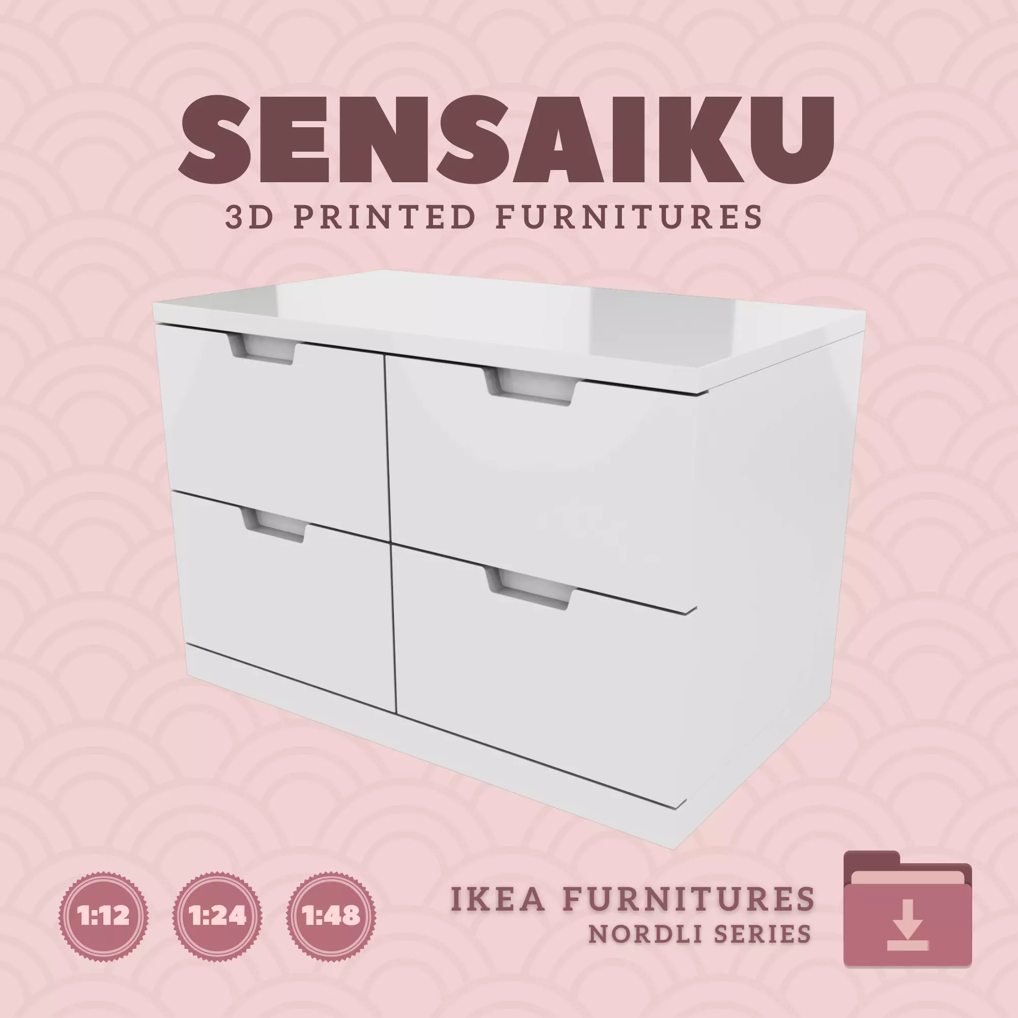 Name: 12. NORDLI 4-Drawer Chest V1Manufacturer - IKEARecommended Printer: Resin 3d PrinterSeries: Furniture Designers SeriesScale: 1:12, 1:24 & 1:483D Builder: Sensaiku