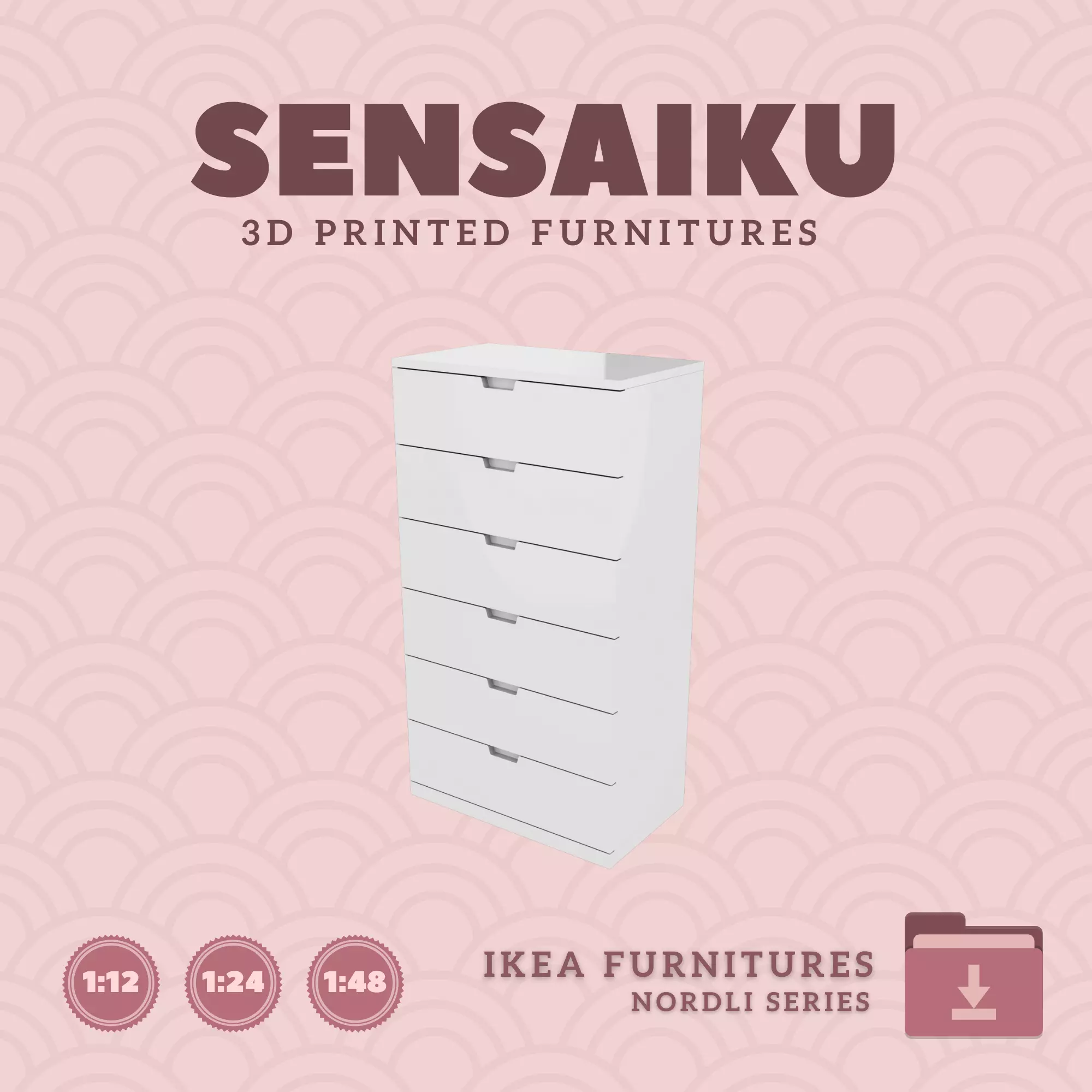 Name: 27. NORDLI 6-Drawer Chest V1Manufacturer - IKEARecommended Printer: Resin 3d PrinterSeries: Furniture Designers SeriesScale: 1:12, 1:24 & 1:483D Builder: Sensaiku