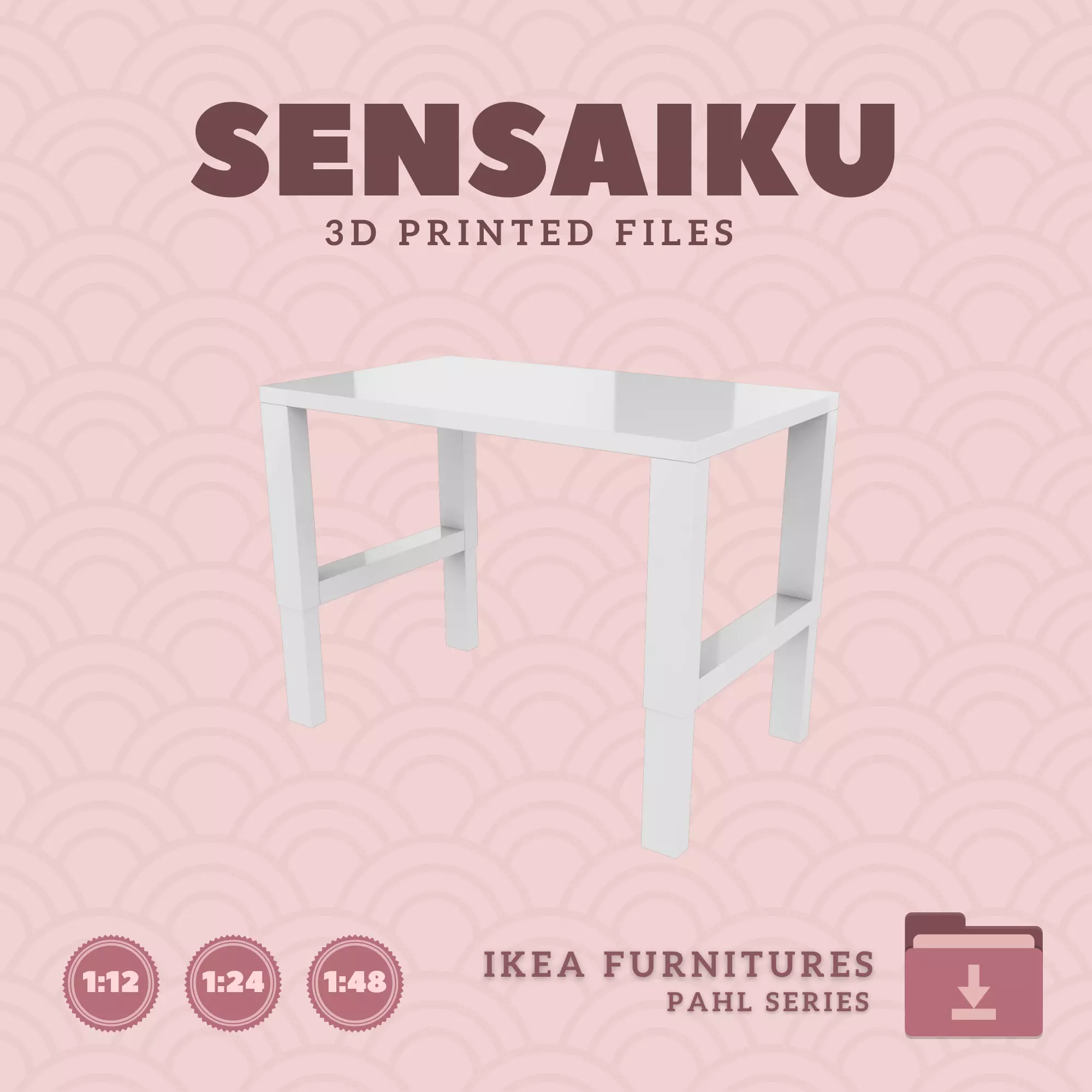 Name: 01. PAHL DeskManufacturer - IKEARecommended Printer: Resin 3d PrinterSeries: Furniture Designers SeriesScale: 1:12, 1:24 & 1:483D Builder: Sensaiku