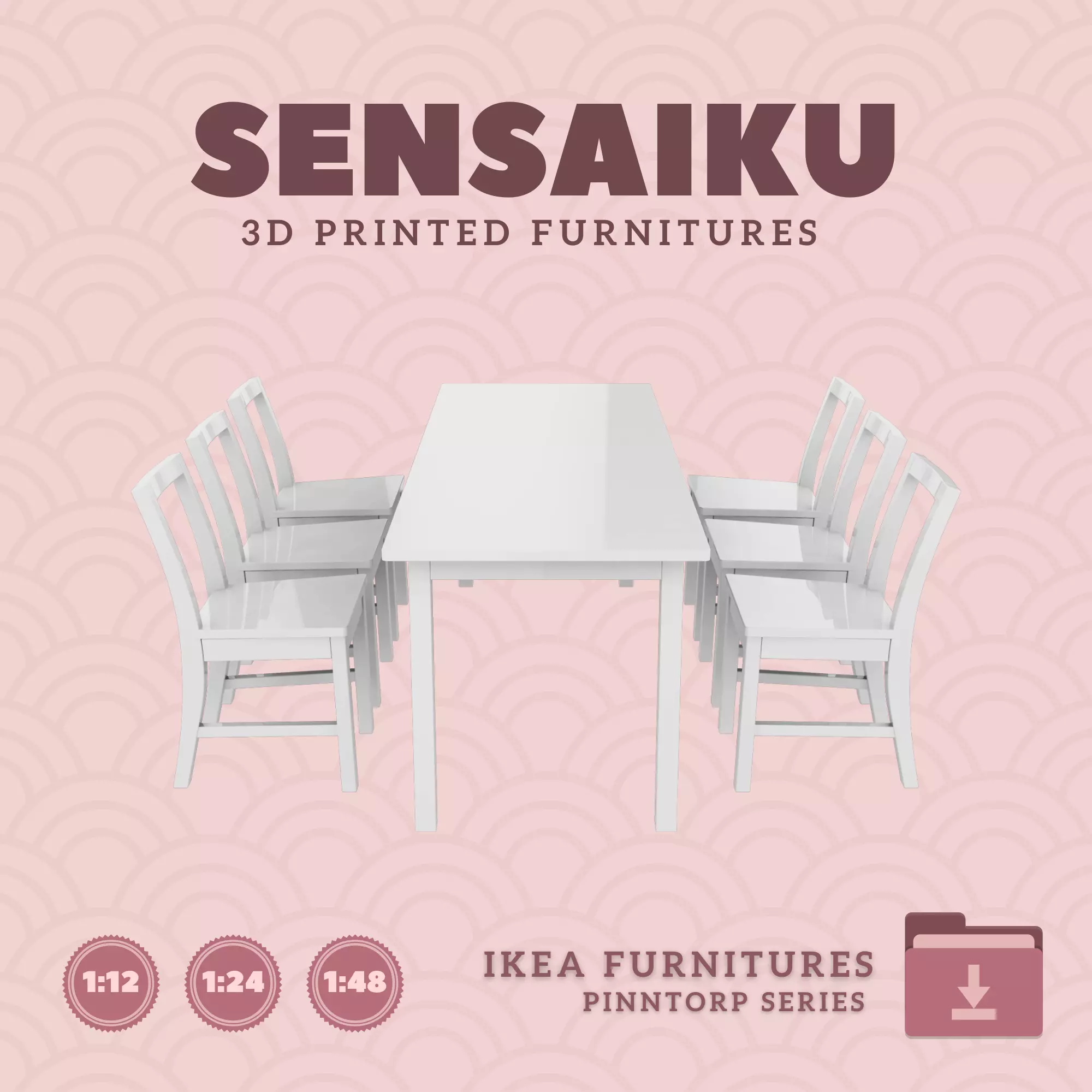Name: 07. PINNTORP Table V3 72 Inch and ChairsManufacturer - IKEARecommended Printer: Resin 3d PrinterSeries: Furniture Designers SeriesScale: 1:12, 1:24 & 1:483D Builder: Sensaiku