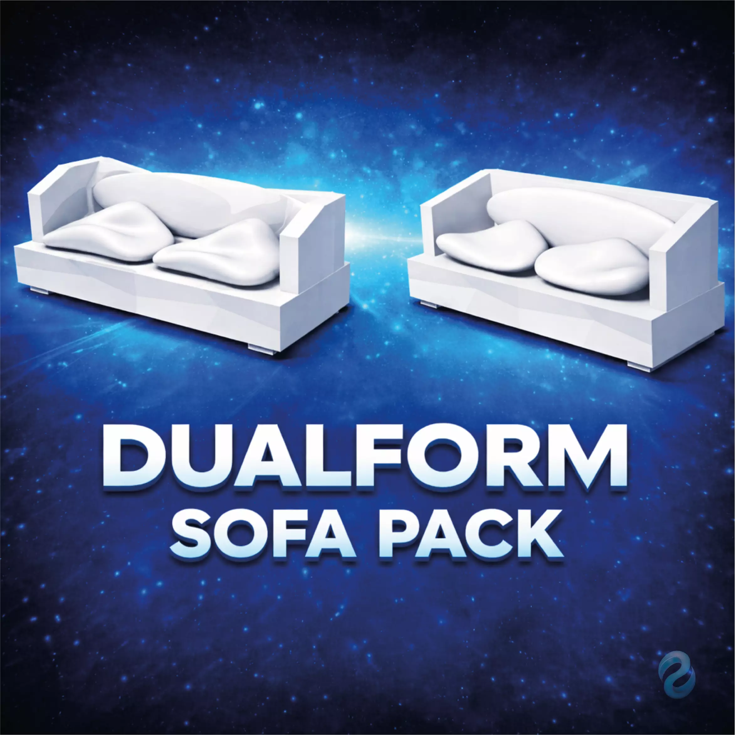 Pack featuring two futuristic sofa variations, exploring the contrast between rigid geometry and organic forms.