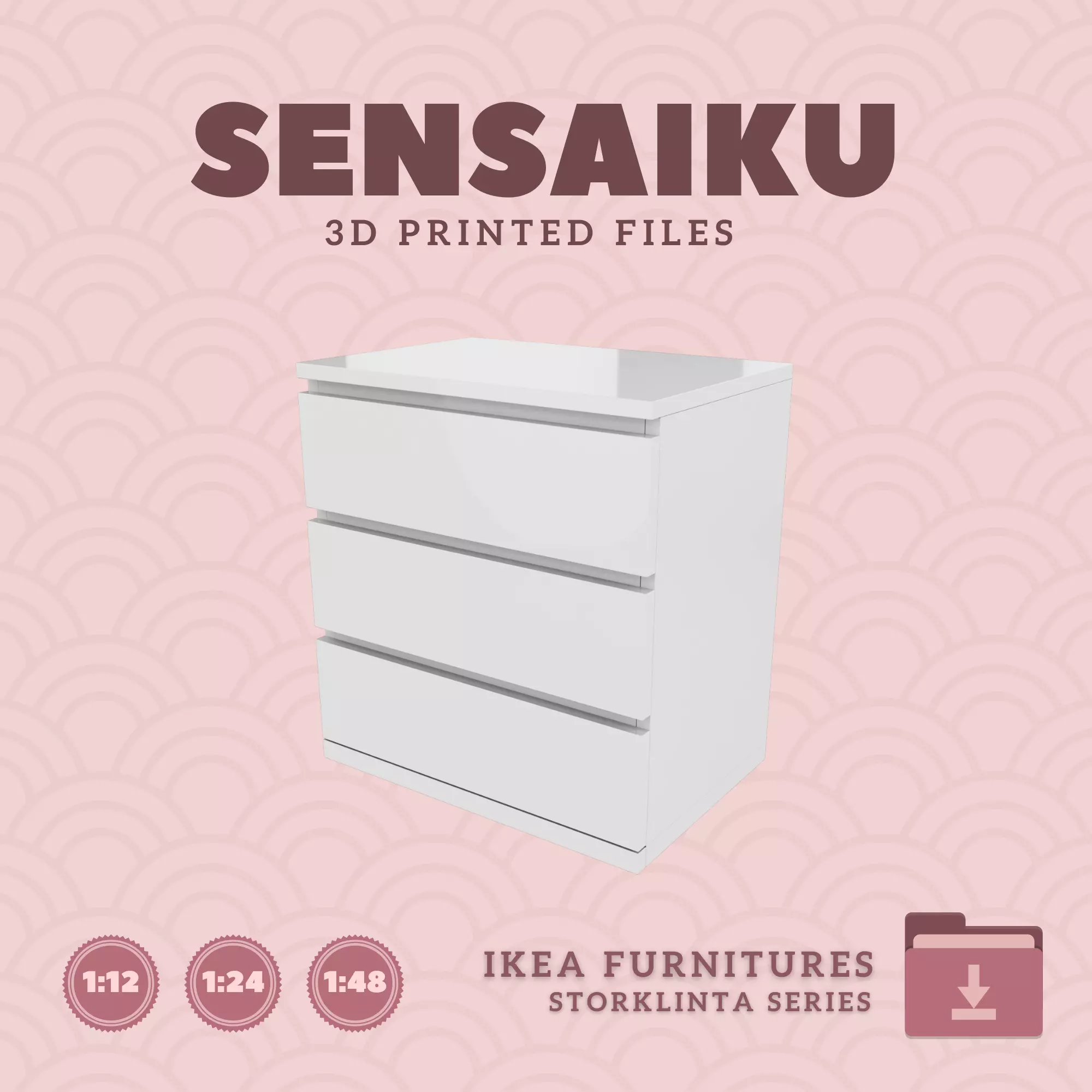 Name: 03. STORKLINTA 3 Drawer ChestManufacturer - IKEARecommended Printer: Resin 3d PrinterSeries: Furniture Designers SeriesScale: 1:12, 1:24 & 1:483D Builder: Sensaiku