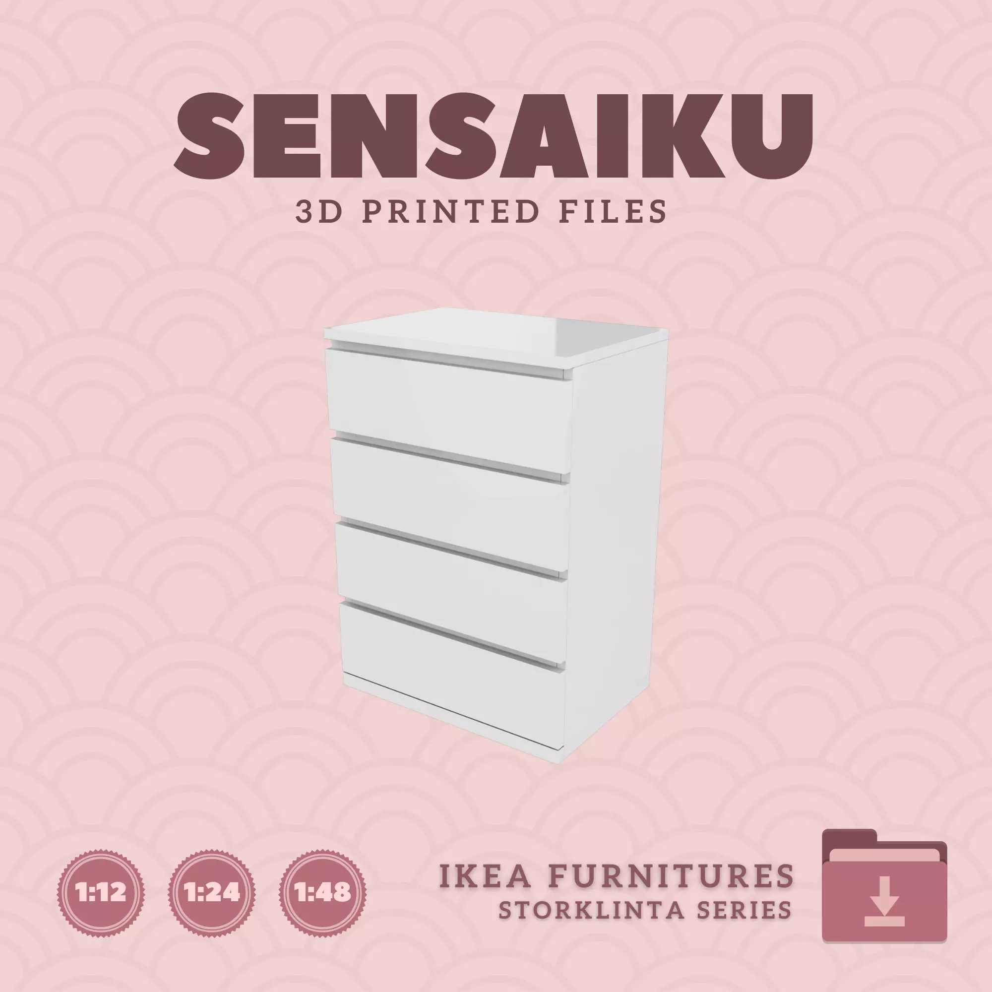Name: 04. STORKLINTA 4 Drawer ChestManufacturer - IKEARecommended Printer: Resin 3d PrinterSeries: Furniture Designers SeriesScale: 1:12, 1:24 & 1:483D Builder: Sensaiku