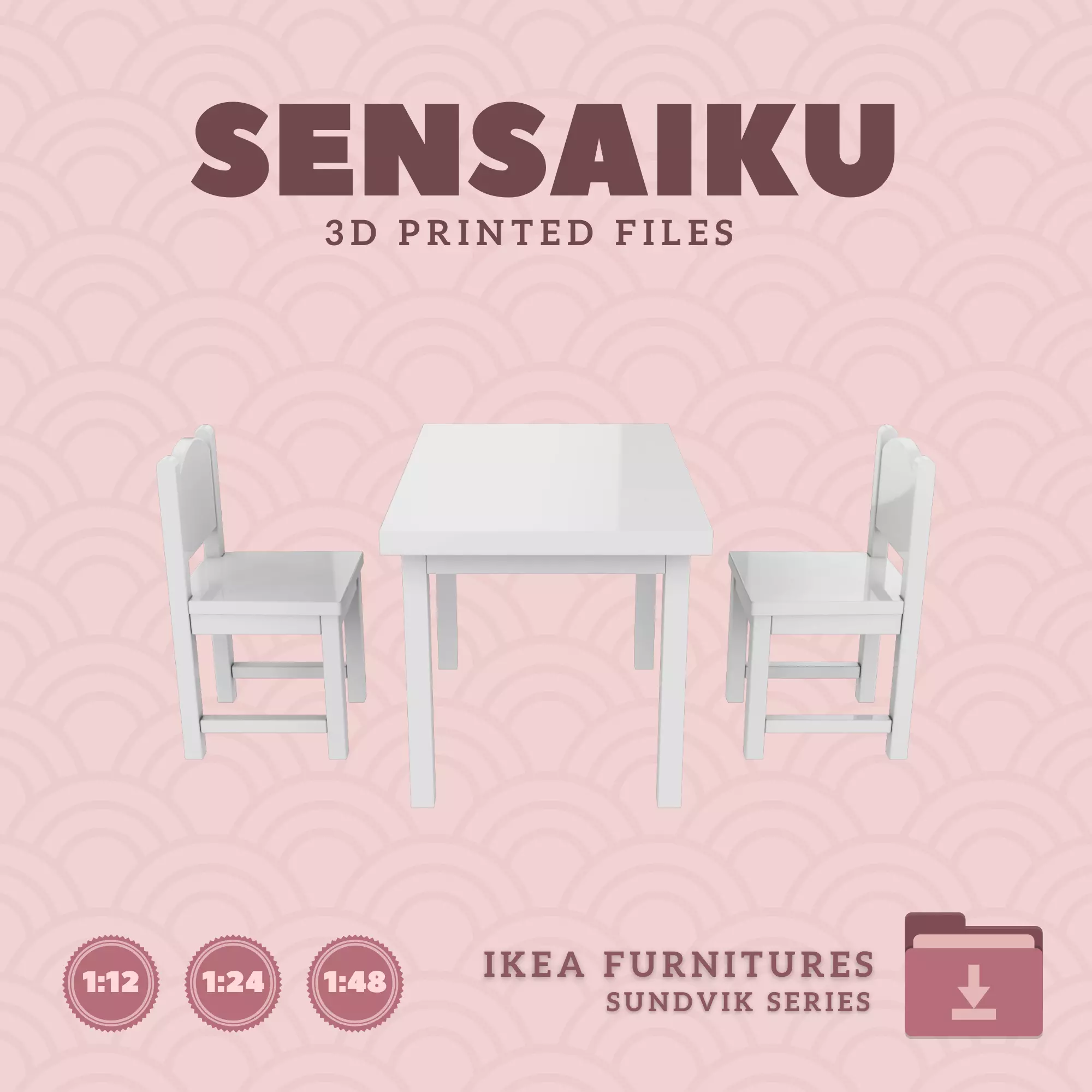 Name: 03. SUNDVIK Children's Table and ChairsManufacturer - IKEARecommended Printer: Resin 3d PrinterSeries: Furniture Designers SeriesScale: 1:12, 1:24 & 1:483D Builder: Sensaiku