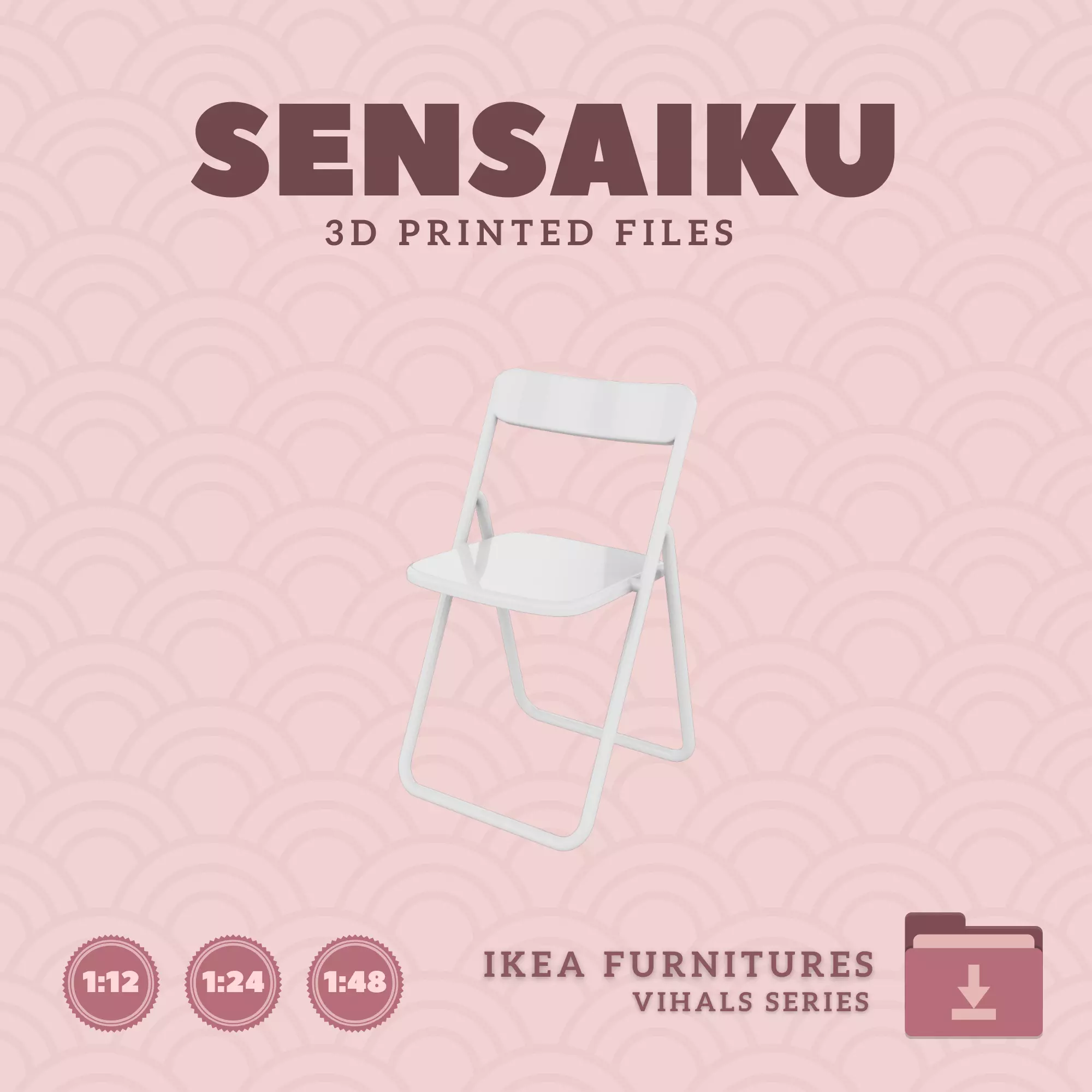 Name: 18. VIHALS Folding ChairManufacturer - IKEARecommended Printer: Resin 3d PrinterSeries: Furniture Designers SeriesScale: 1:12, 1:24 & 1:483D Builder: Sensaiku
