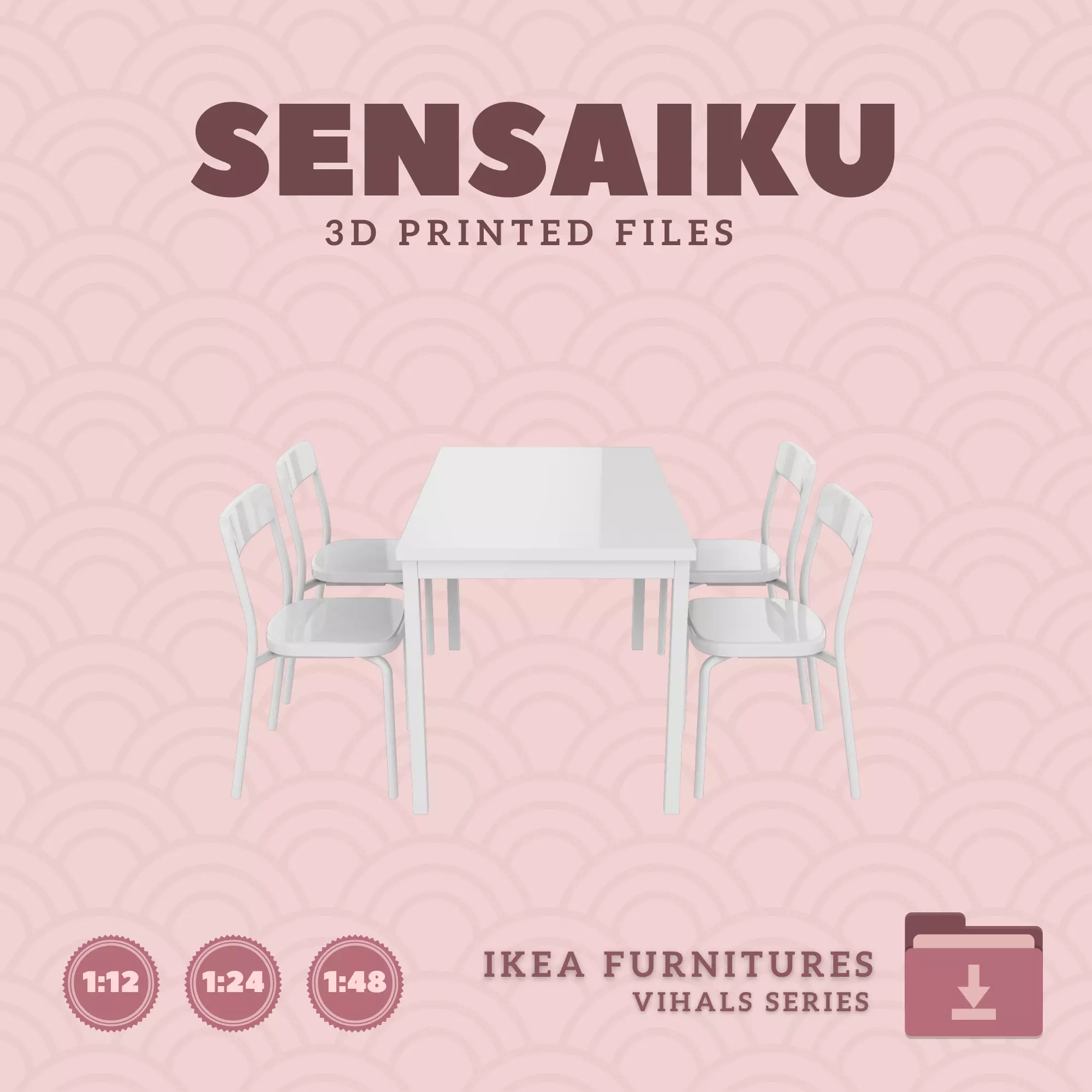Name: 21. VIHALS Table 49 In & ChairsManufacturer - IKEARecommended Printer: Resin 3d PrinterSeries: Furniture Designers SeriesScale: 1:12, 1:24 & 1:483D Builder: Sensaiku