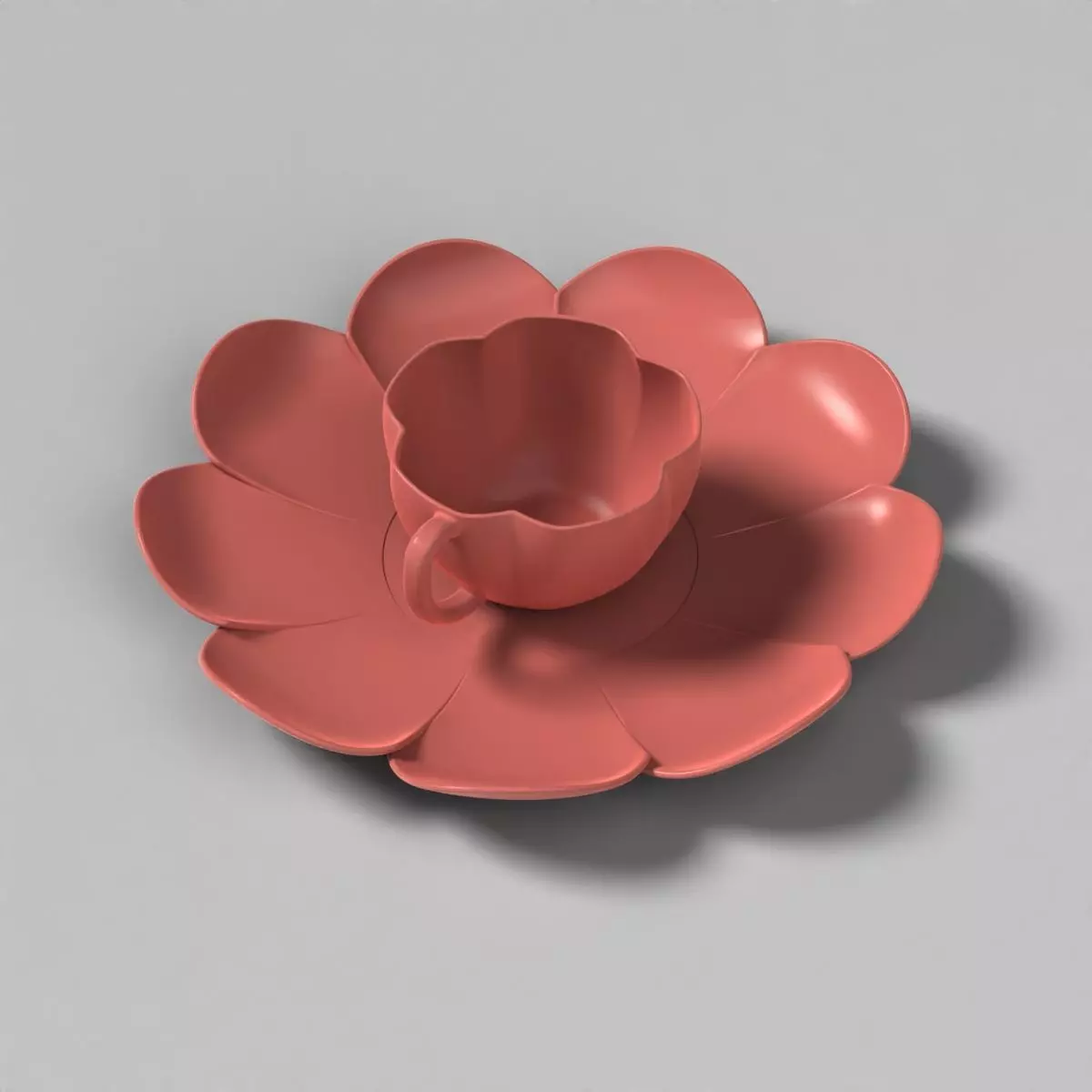 This tableware set, consisting of a cup and a plate, is inspired by the elegance of a blossoming flower. Both pieces feature petal-like contours that merge functionality with nature-inspired aesthetics.