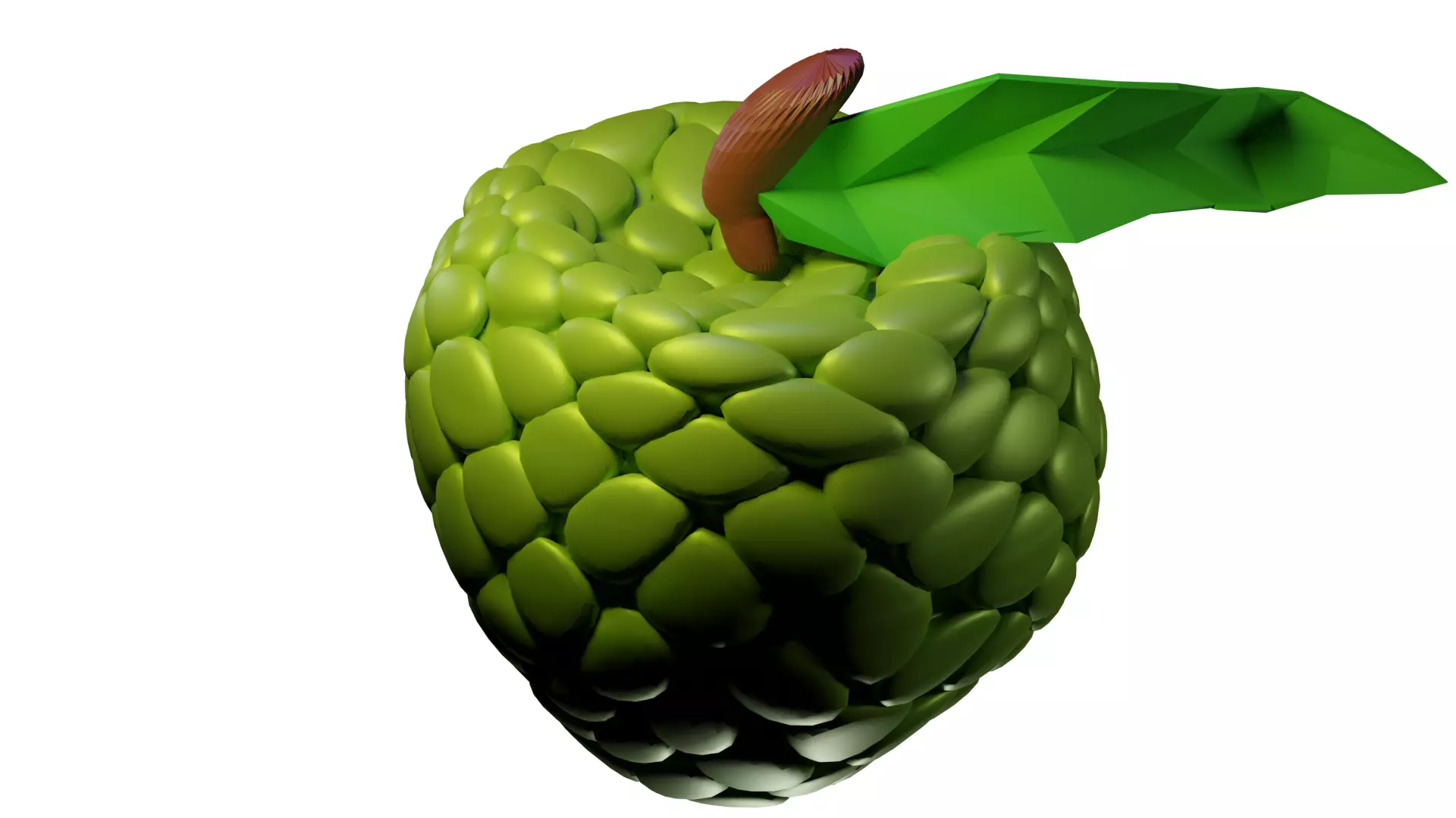 Overall, it’s a well-constructed 3D interpretation of a custard apple with a stylized twist, suitable for use in animation, educational media, or digital art portfolios.