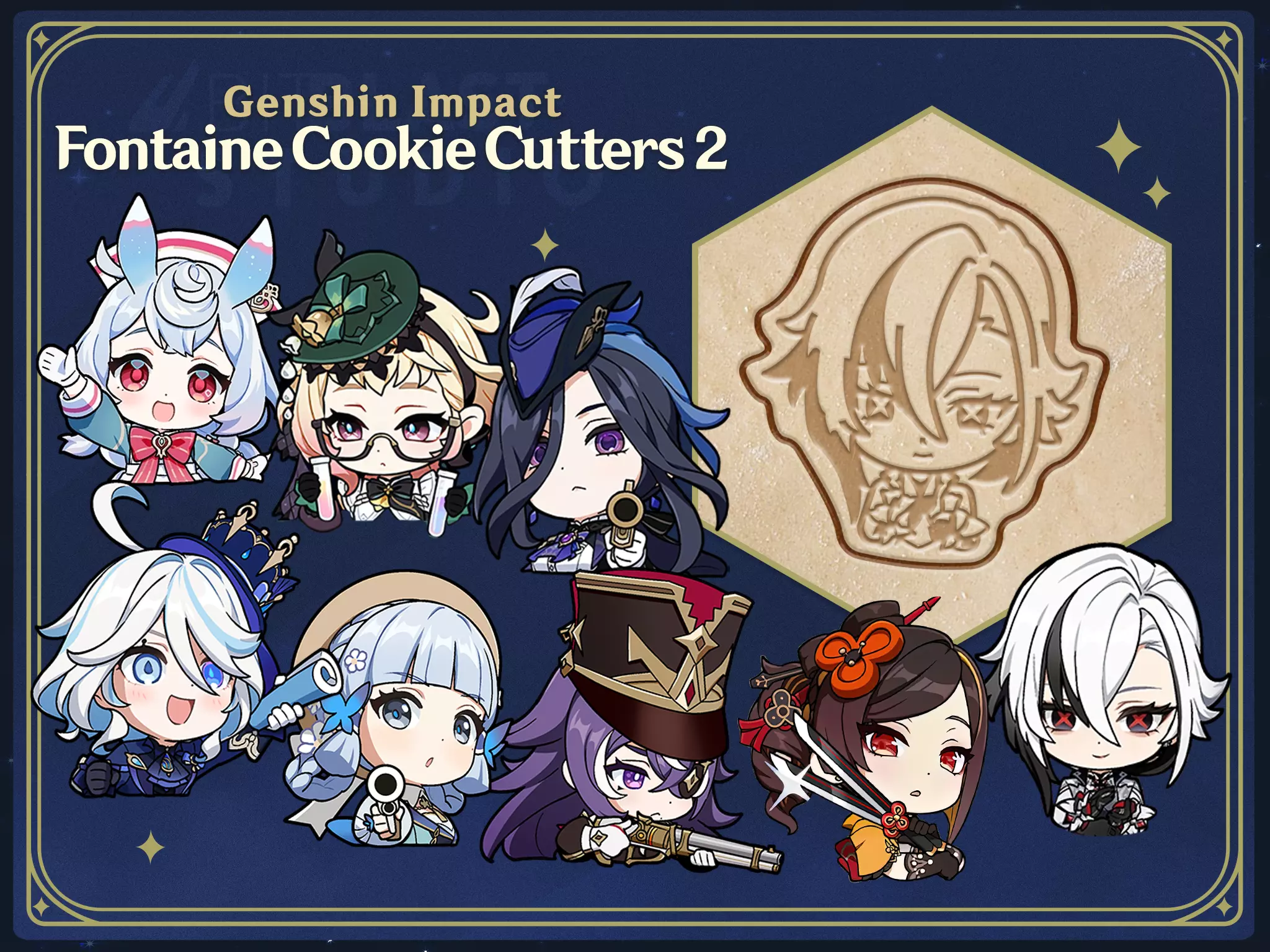 Our Fontaine Cookie Cutters Pack #2 with characters from Genshin Impact!
