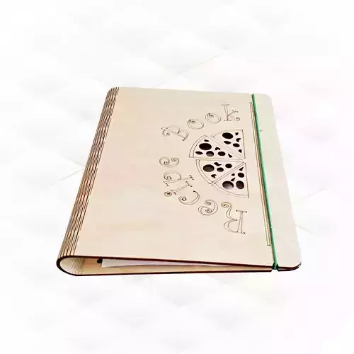 Gift recipe boook with pattern pizza, svg dxf unique design for laser cut. Cutting vector drawing. Kitchen decor for handmade with laser machines. Laser svg, laser dxf, laser template. Engraving laser. Laser pattern, vector template, cut plan. Svg dxf files. Glowforge svg cut file. Download file, digital layout. Original, unique product design will help you create a stunning gift or product for your store. Universal product! It can be made from plywood (as in the photo), cardboard or other material. Additionally, painting in your favorite colors, you will receive an exclusive gift, well, just a gorgeous thing!