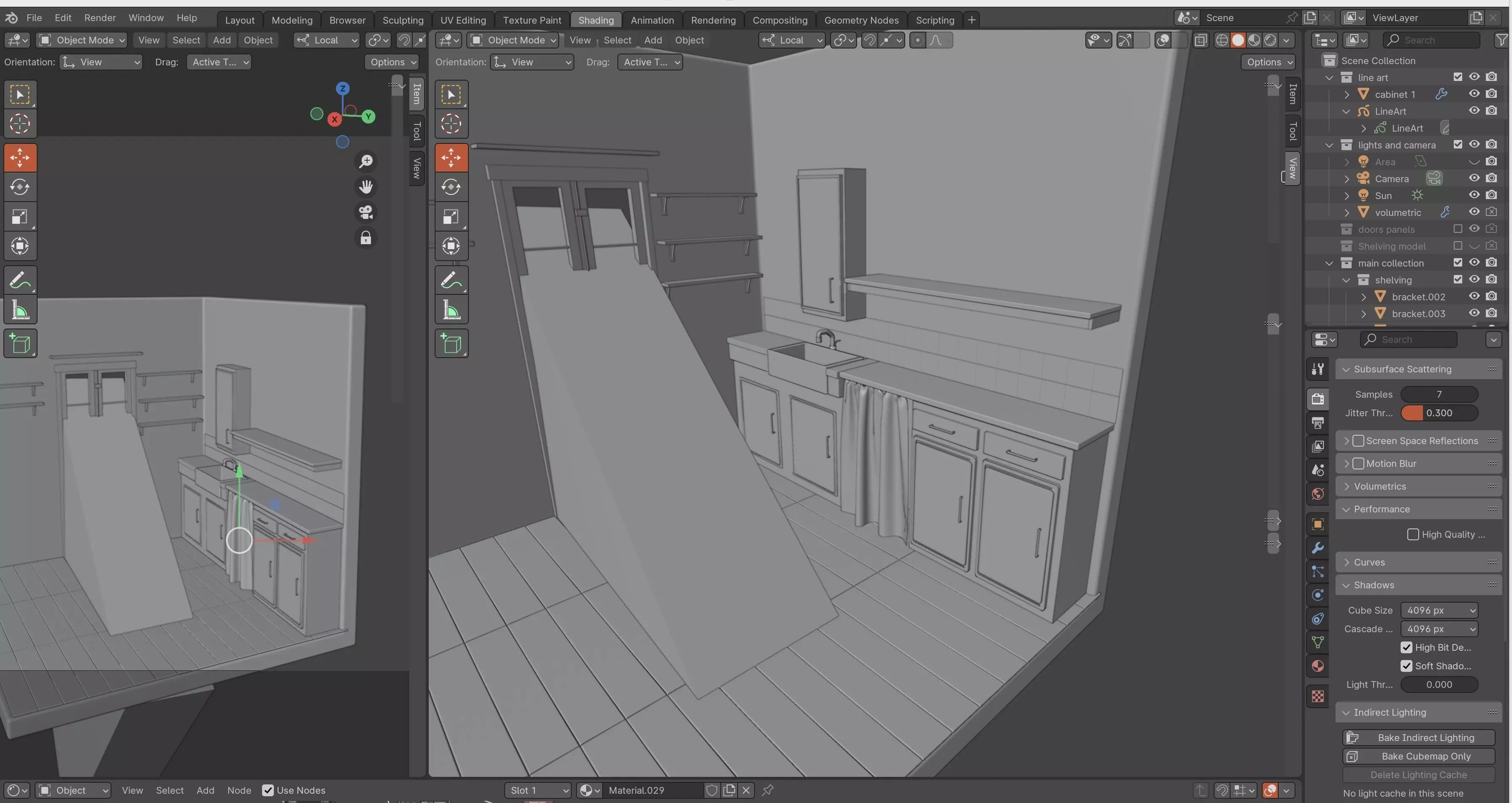 hello everyone, I'm Karla Caprali, I am an animator, filmmaker, and artist. As many of you know I love making my own 2d and 3d assets, I use them on my short films, and on many other projects. I recently made this model on Blender, which you can now purchase the whole file for your own use, all you have to do is download the file and use it as you wish. This file is a basic French-inspired kitchen that you can finish by adding furniture and appliances.I added a beautiful light from outside and made some rays through the window. All the textures are a regular toon shader, the little curtain under the counter has a cloth modifier, and all objects as you see have their names on the outiliner, I tried to organize the best i could, if you have any questions about this project drop me a line, I hope you enjoy it.