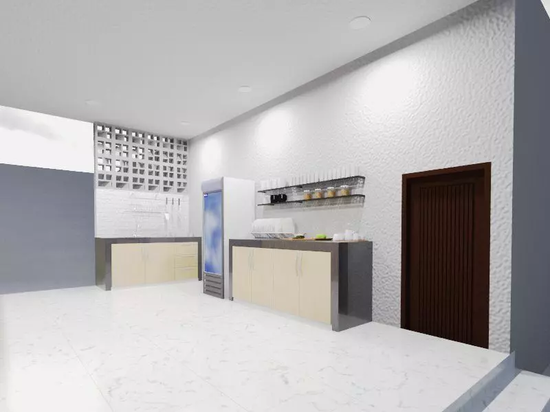 Kitchen Set design with brick tile wall. The model is optimized and ready to use. Modeled in SketchUp. Made with great attention to small details.