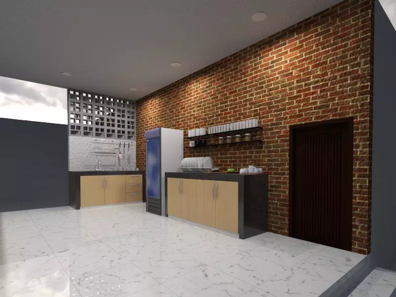 Kitchen Set design with brick wall. The model is optimized and ready to use. Modeled in SketchUp. Made with great attention to small details.