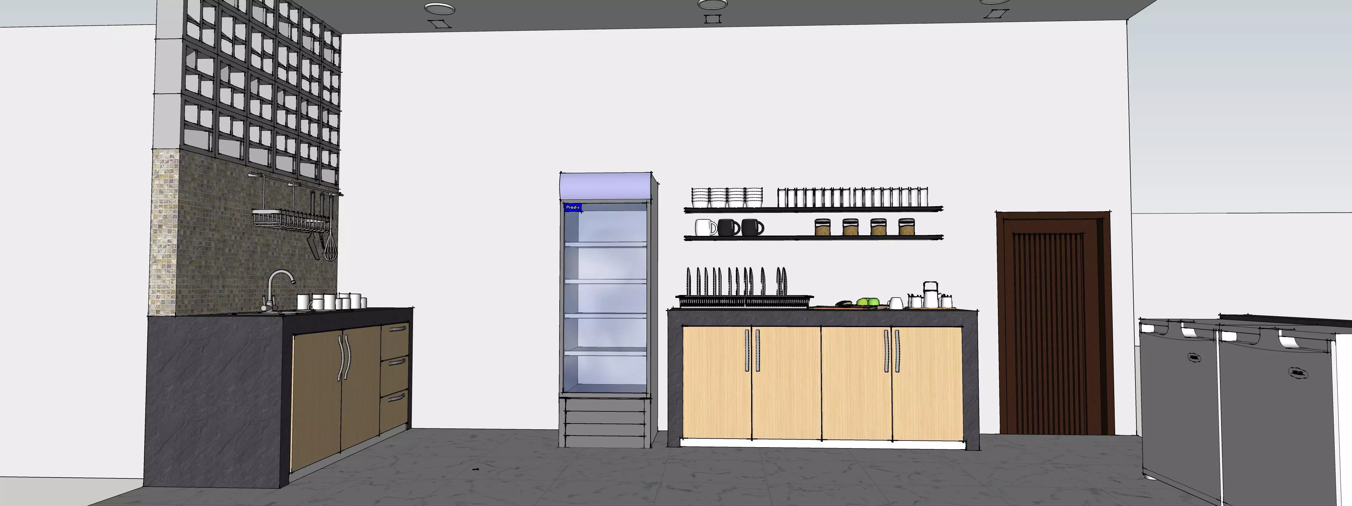 Kitchen Set design with tile wall. The model is optimized and ready to use. Modeled in SketchUp. Made with great attention to small details.