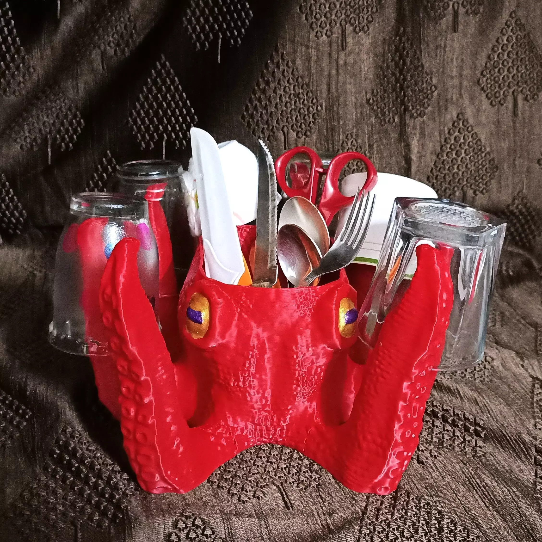 Our eight limbs friend Octy will help you in holding kitchen utensils like Chopping board, glasses / cups with his 8 limbs and utensils like spoons, forks, knifes, e.t.c with his head. The model is available in 2 versions and they can be printed in multi colour with the help of .3mf files**Commercial License:** You can print and sell this model, sharing or selling digital files is prohibited.