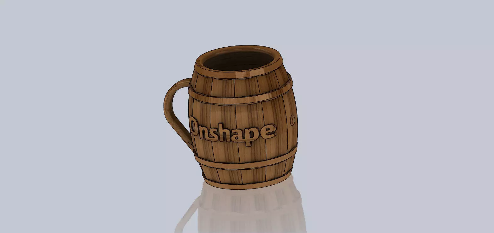 File: Barrel Mug.stlName: Barrel MugPLA Material: 65.05 grams ( 0.143 lbs) Infill = 10%Size: 85.91 mm (3.38) x 66 mm (2.60) x 77.47 mm (3.05)Resolution: 0.20mmLayers: 393 layers Rafts: Yes Supports: NoPrint Time: 6 hr 27 minFunction: Until PTC gets the swag machine working, we Onshape users can just print our own. This is a barrel shaped mug. You should be careful putting hot liquids into PLA - perfect for alcoholics that want to carry their beer around the office. For best results, spray this with FDA approved silicone to seal it. The handle is designed so it can be printed without supports. It can be printed at any scale but if you print is 1:1 then it will be about 2.60 (66mm) around and about 3.05" (78mm) tall.Meta: PTC Onshape Barrel Beer Coffee Mug Cup