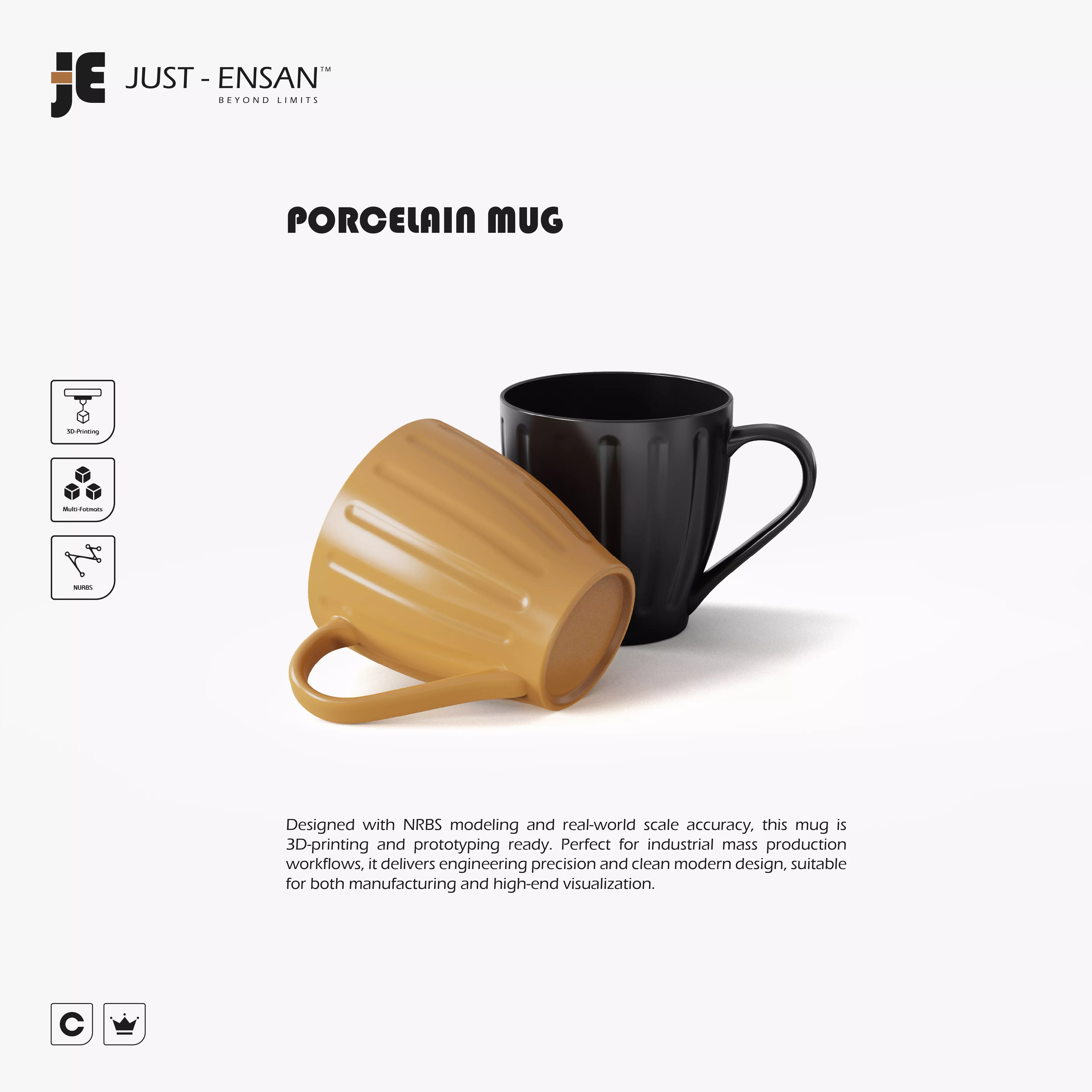 A real-world scale porcelain mug modeled with NRBS geometry for industrial prototyping and mass production workflows. Ready for 3D printing and CNC machining, this asset provides engineering-grade precision while maintaining a refined minimalist aesthetic. Includes multiple file formats and production-ready geometry optimized for both manufacturing and visualization.