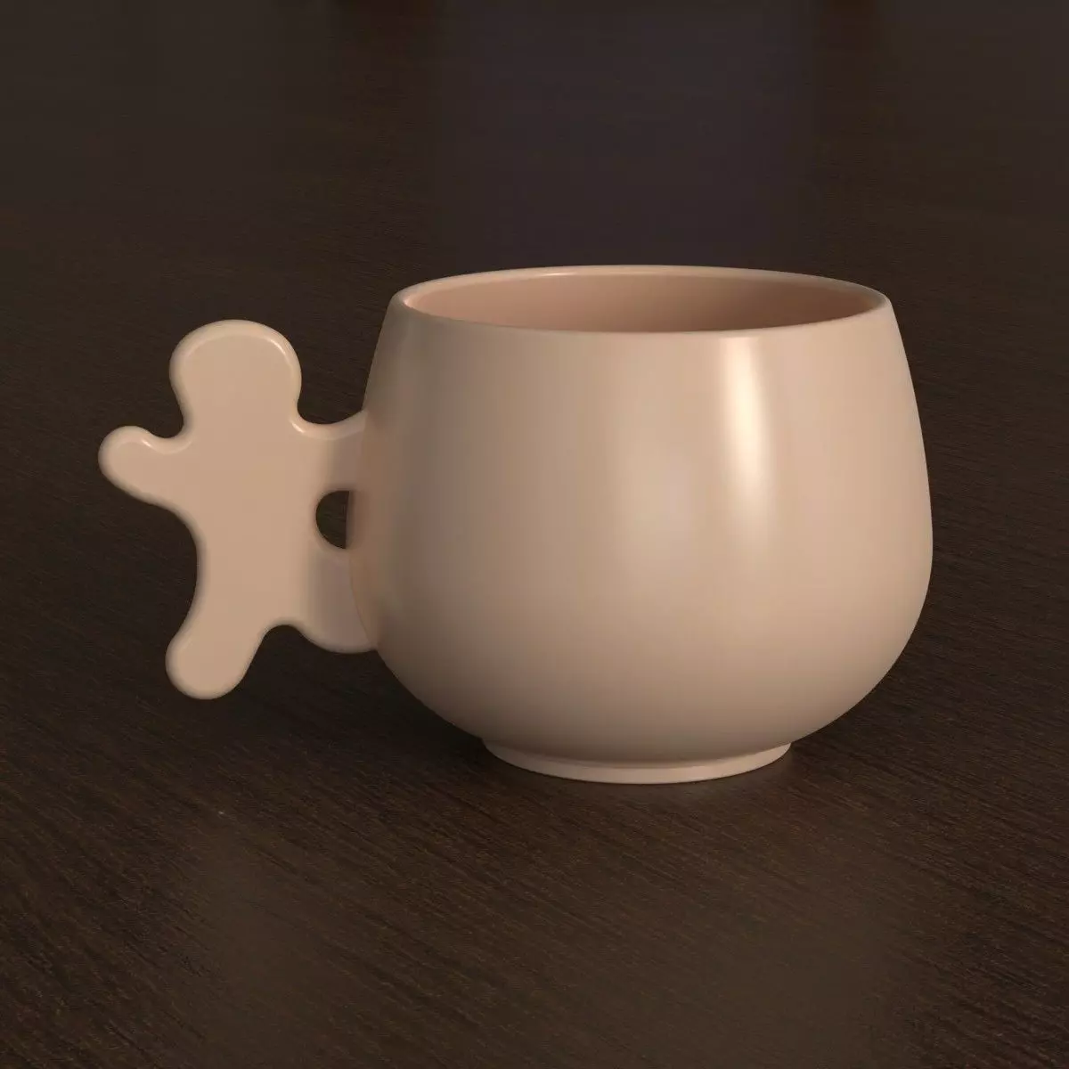 The design features a playful integration of a stylized human figure as the cup handle, adding an amusing artistic touch.