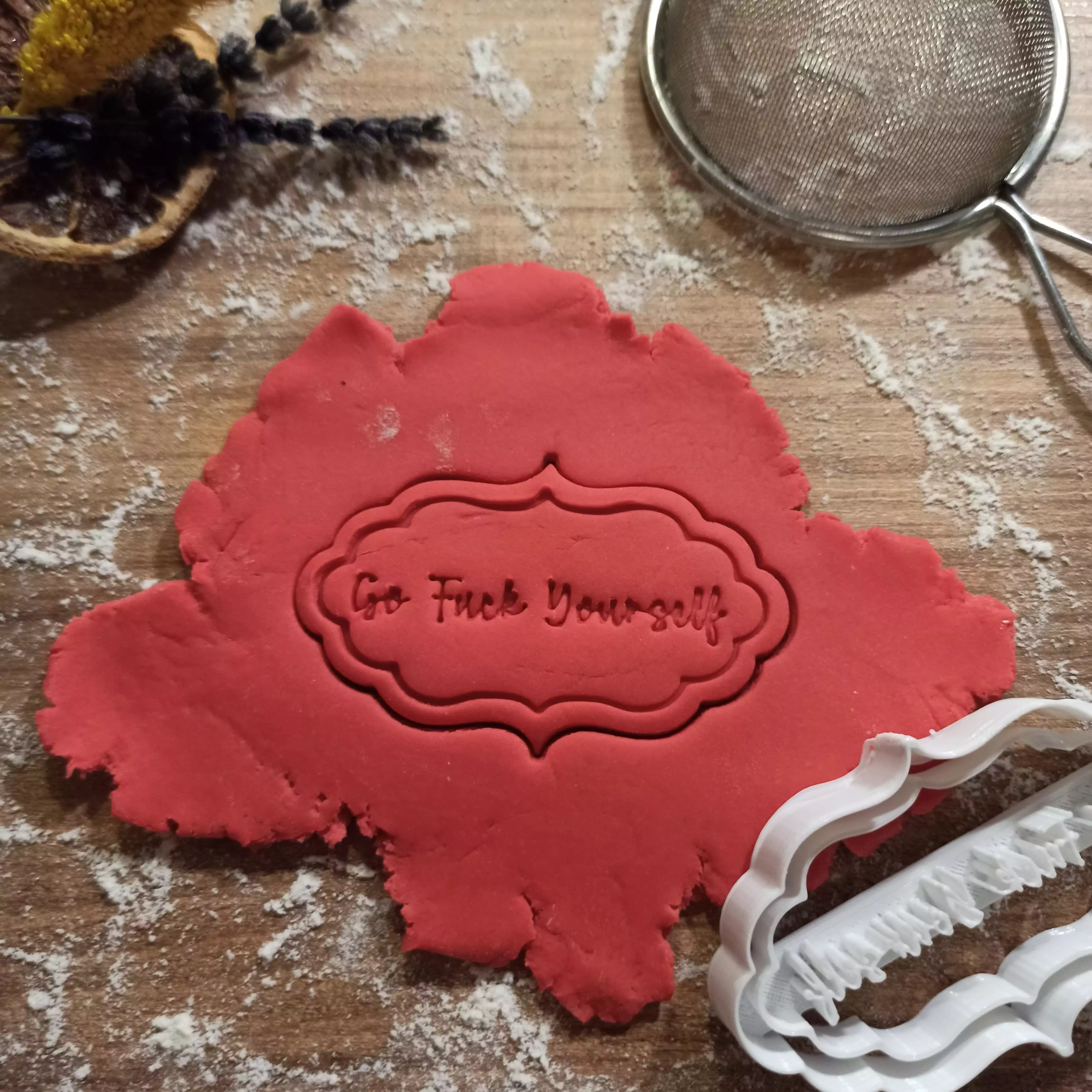 Introducing our Rude Cookie Cutter: Go F*ck Yourself - the ultimate treat for adults with a wicked sense of humor! This funny cutter is tailor-made for mean-spirited bakers, featuring a cute sw*aring text design that adds a dash of edgy charm to your creations.