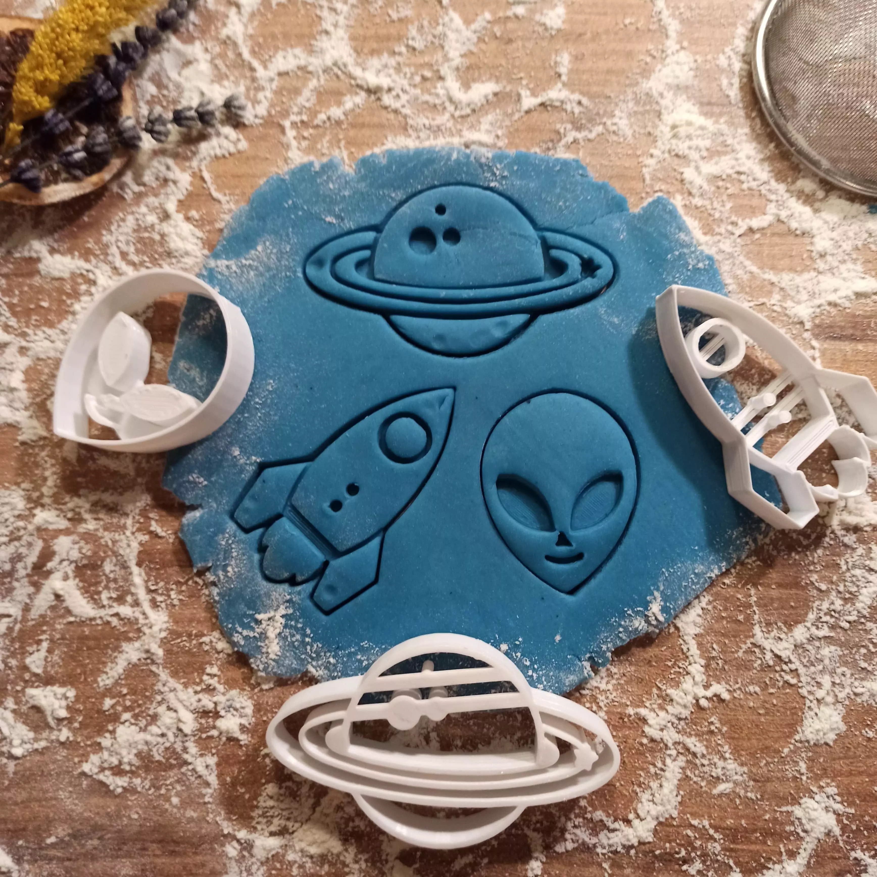 What's Included?1 Alien1 Rocket1 Ringed Planet— Our cookie cutters have unique designs and are designed for easy cleaning. They are both lightweight and durable as they will be precisely manufactured with a 3D printer.