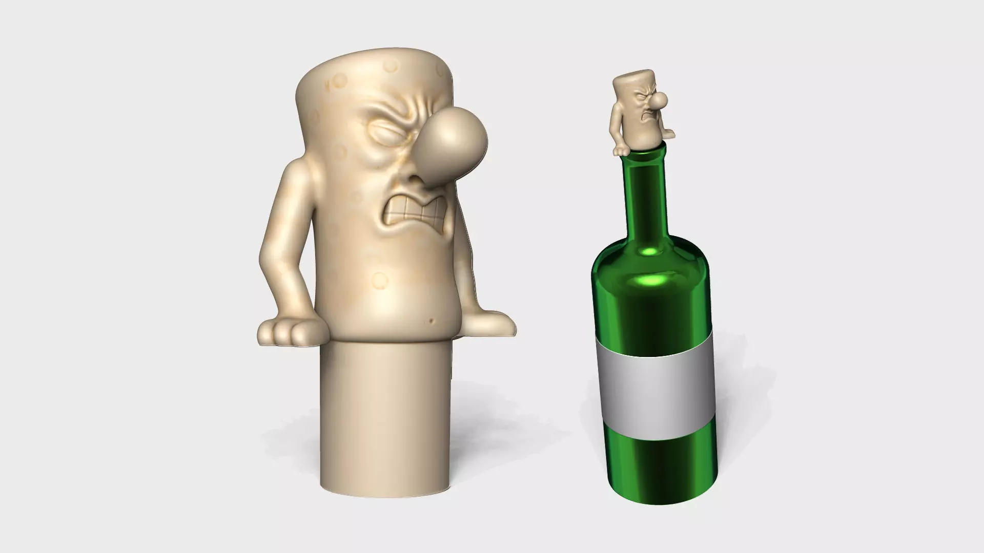 Funny Wine Cork character, to be printed and used as a Wine Cork replacer, for opened wines or for decorative empty bottles.A funny character that is forcing out to escape from its duty