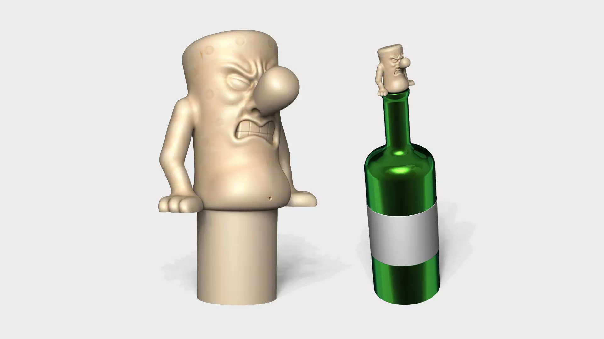 Funny Wine Cork character, to be printed and used as a Wine Cork replacer, for opened wines or for decorative empty bottles.A funny character that is forcing out to escape from its duty