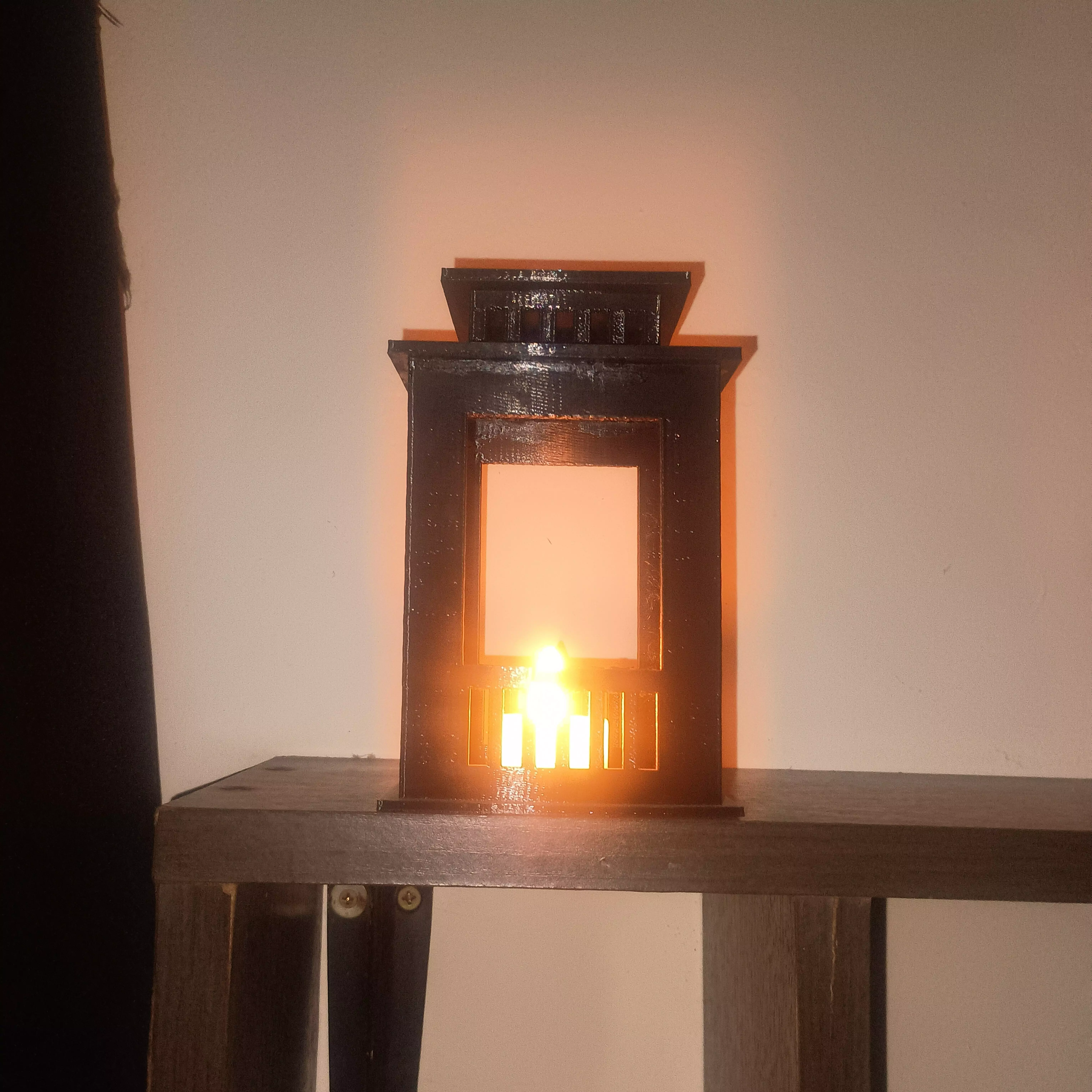Bring warm, cozy ambient light to any space with this beautifully designed 3D printed lantern-style candle holder.Its classic mini-lantern look, combined with clean lines and modern geometry, makes it perfect as a decorative piece or functional portable farol for LED tea-lights.Lightweight, sturdy, and easy to print, this lantern is ideal for home decor, tabletop setups, outdoor dinners, or themed events.