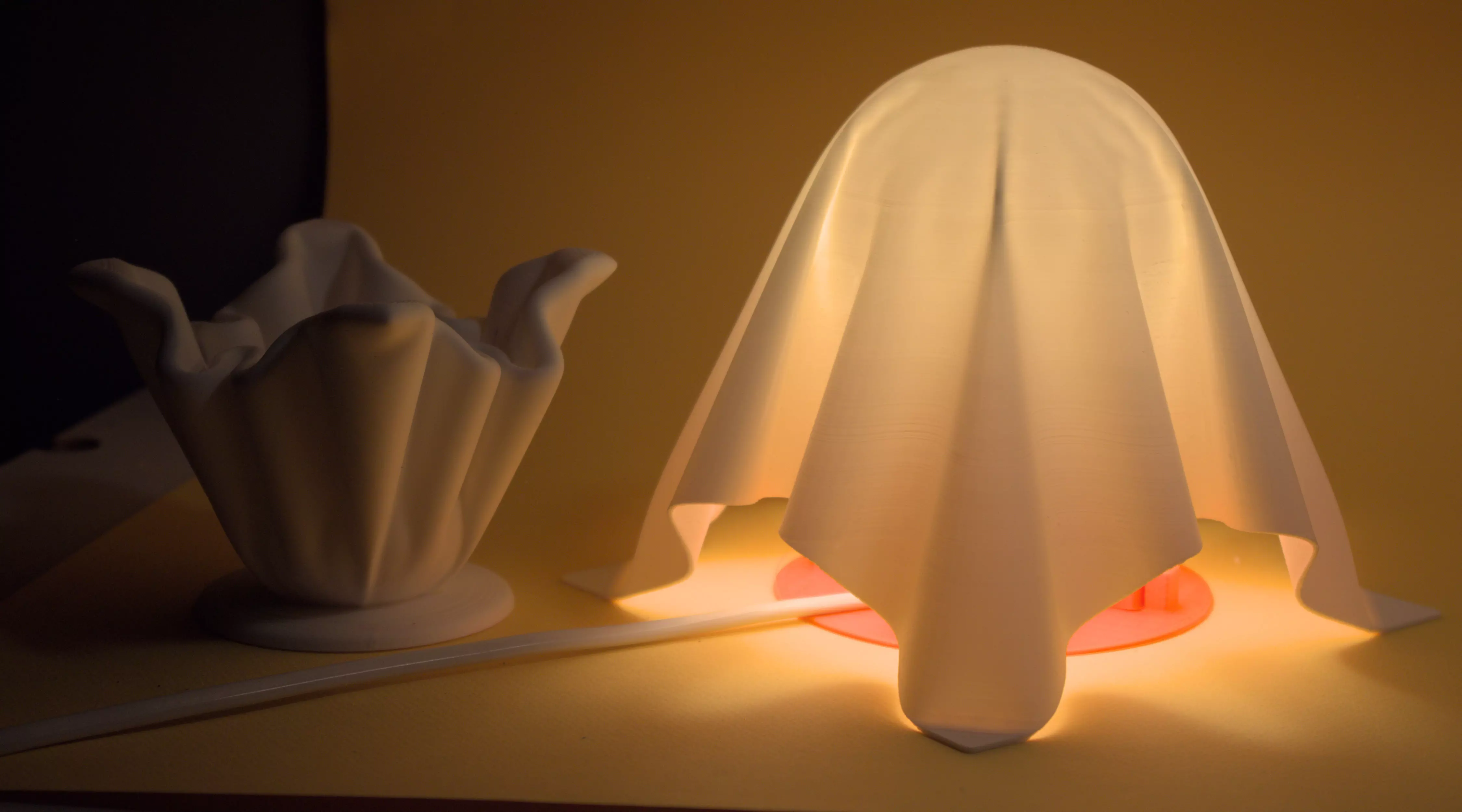 Assembly: Simply place the lampshade over the base and socket support—no additional hardware needed! • Unique Design: The flowing, ghostly drape gives this lamp a one-of-a-kind look that’s both modern and hauntingly beautiful. • Versatile Use: The lampshade doubles as a stylish trinket dish, making this set a perfect blend of form and function. • Easy to Print and Assemble: Designed for a seamless printing experience, with clear instructions to ensure a professional result. • Perfect for Gifting: A thoughtful, handmade gift for 3D printing enthusiasts, home decor lovers, or anyone who appreciates unique lighting solutions.