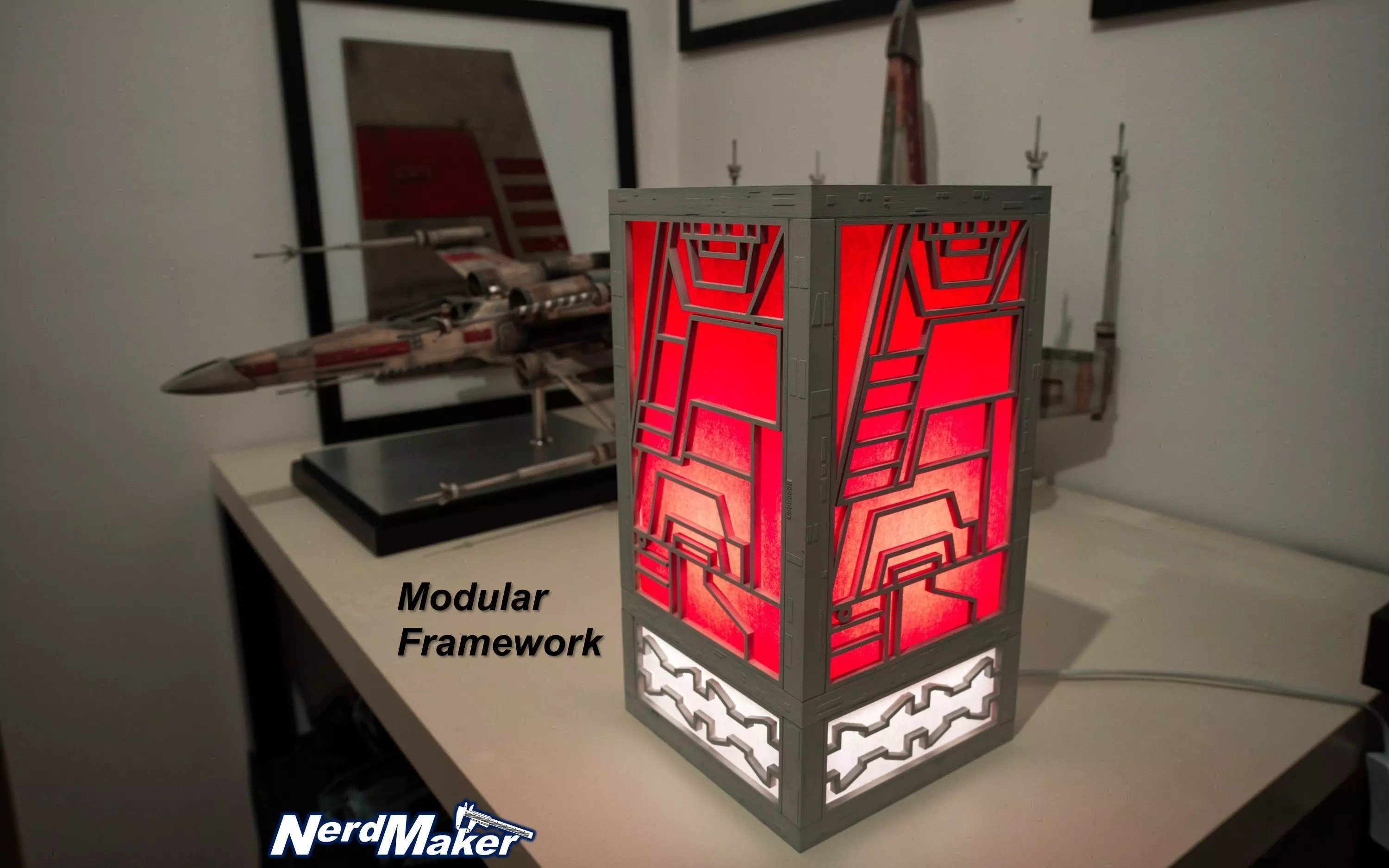 This is a modular Japan-Style Squadron Hero Line Art Lamp for your collection, living room or window sill. You can build it in different heights and vary the pattern of the side panels to your liking.