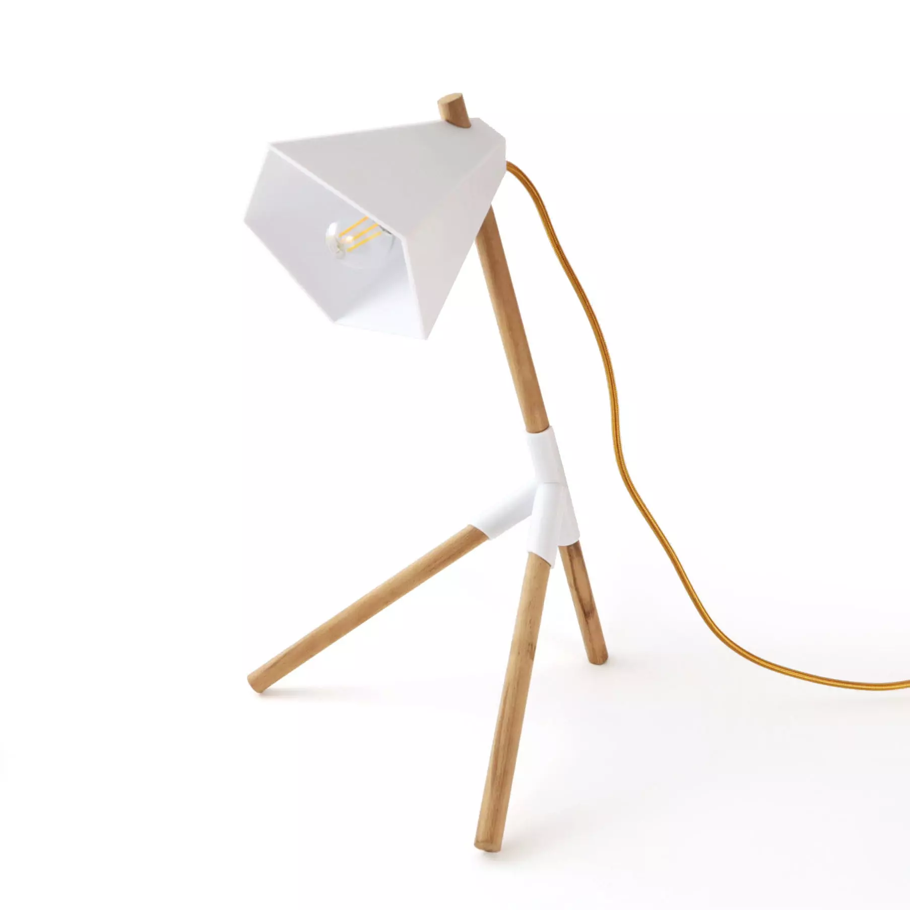 Concerning the lampshade, to change from the classic conical shapes, I energized it by facetizing it and giving it a modern style. You can adjust the inclination of the lamp by sliding the intersection module on the main foot. The lamp head is also adjustable.