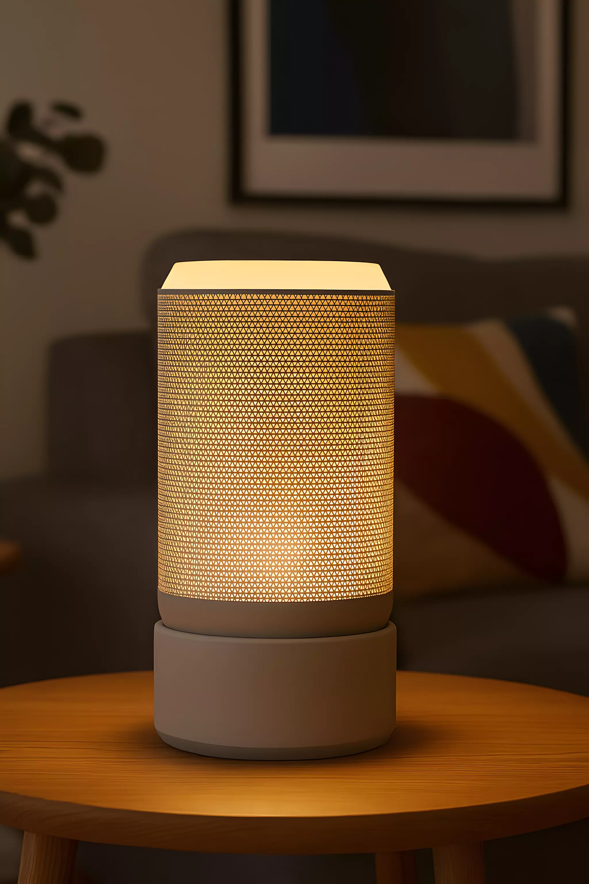 Illuminate your space with modern elegance! This 3D printable table lamp design features a sleek cylindrical shape and a geometric mesh surface, ideal for diffused lighting and stylish interiors. Designed for 3D printing enthusiasts and home decor lovers, this lamp blends aesthetics with practicality.