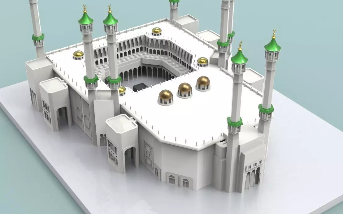 الكعبة، المملكة العربية السعودية (KSA) - تصميم ثلاثي الابعاد للمسجد الحرامA highly detailed 3D model of the Masjid al-Haram in Mecca, Saudi Arabia, designed for high-resolution 3D printing. The model captures the architectural splendor of the holy site, including the Kaaba, minarets, and surrounding courtyards. Every angle and feature of the structure is meticulously represented, ensuring an accurate and impressive replica. Suitable for printing at various sizes, with settings optimized for high-quality output to showcase the grandeur of Islamic architecture."
