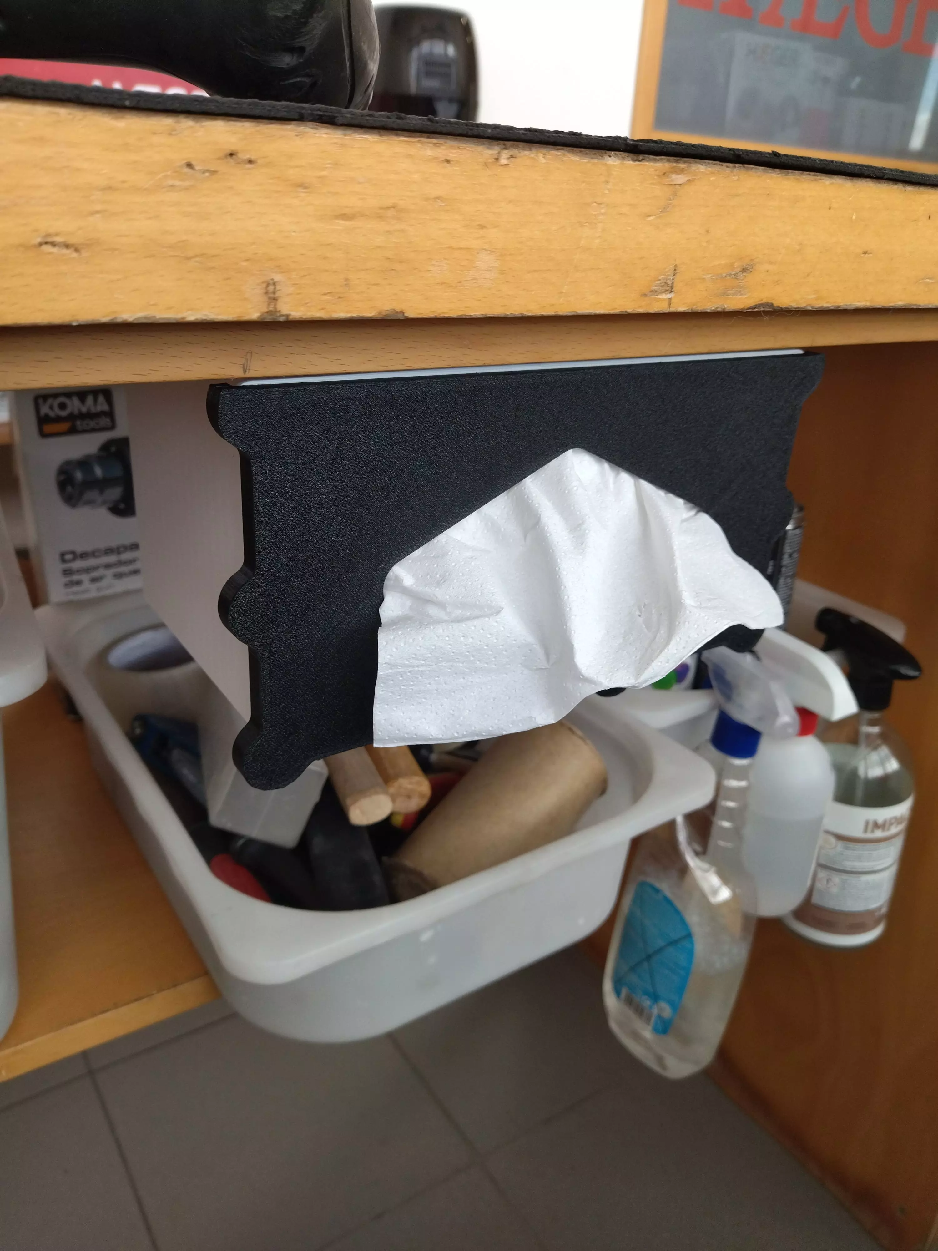 In my workshop, I needed to use towels to clean my hands after my projects, but all the holders/boxes I saw on the market didn't fit in the space I had and took up a lot of space.Because of this, I created this design. I have a box that perfectly fits a 22cm x 11cm roll of paper towel and covers it with a lid with a front opening for removing the paper.