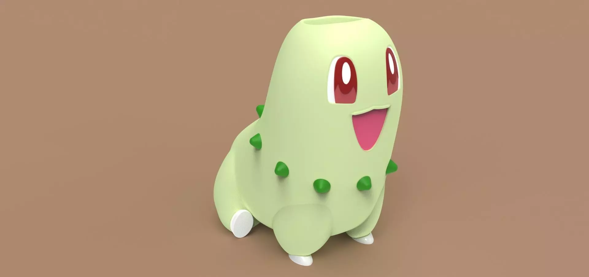 The renders were made with the Keyshot program, allowing for the creation of realistic images that highlight the beauty and unique design of this Chikorita planter.