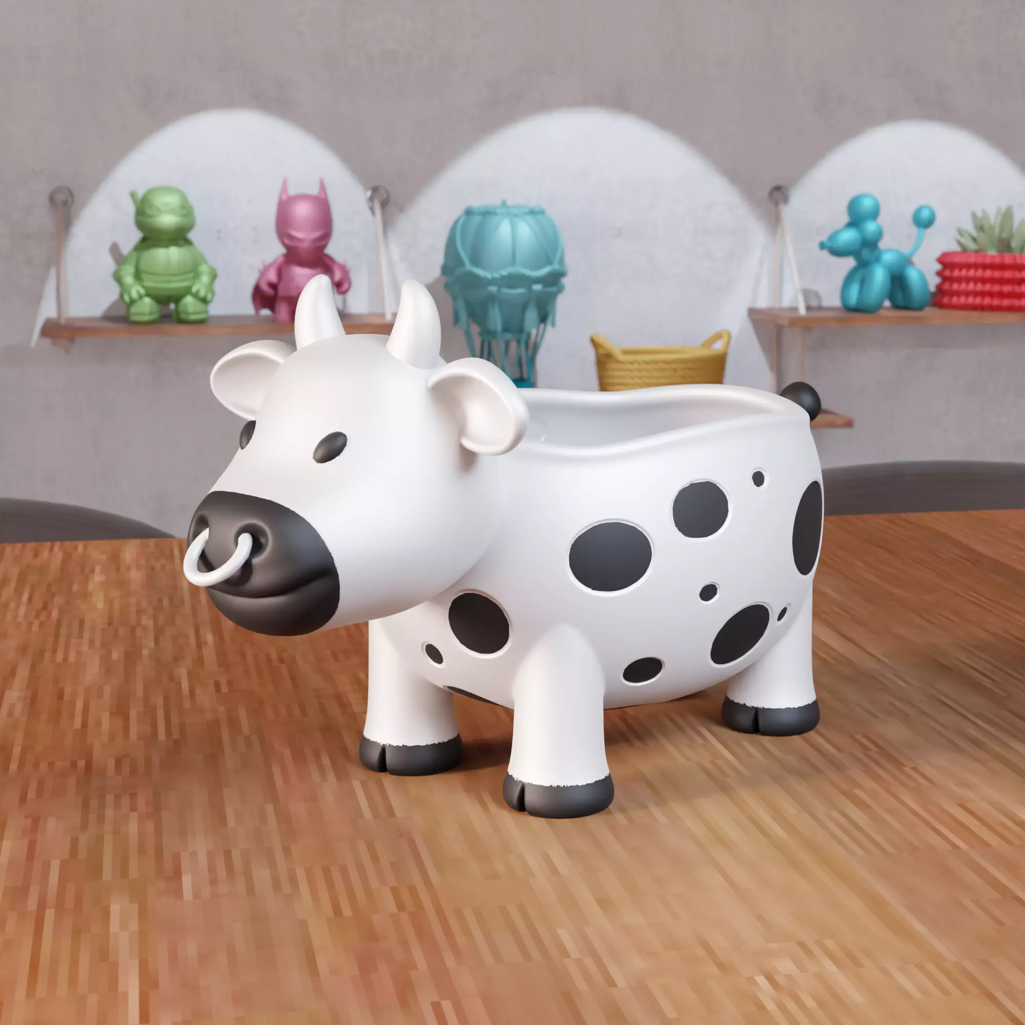 This cow planter bowl is a decorative 3D model designed to function as both a small planter and a bowl-style container. With its playful farm animal form, smooth surfaces, and balanced proportions, it works beautifully for holding small plants, succulents, desk accessories, or decorative items. The model combines charm and practicality, making it ideal for home decor, office desks, shelves, or gift projects. Carefully modeled for clean and reliable 3D printing, it is suitable for hobbyists and professionals alike. This is a digital 3D model created specifically for printing and is provided exclusively in STL format for use with compatible slicing software and printers.