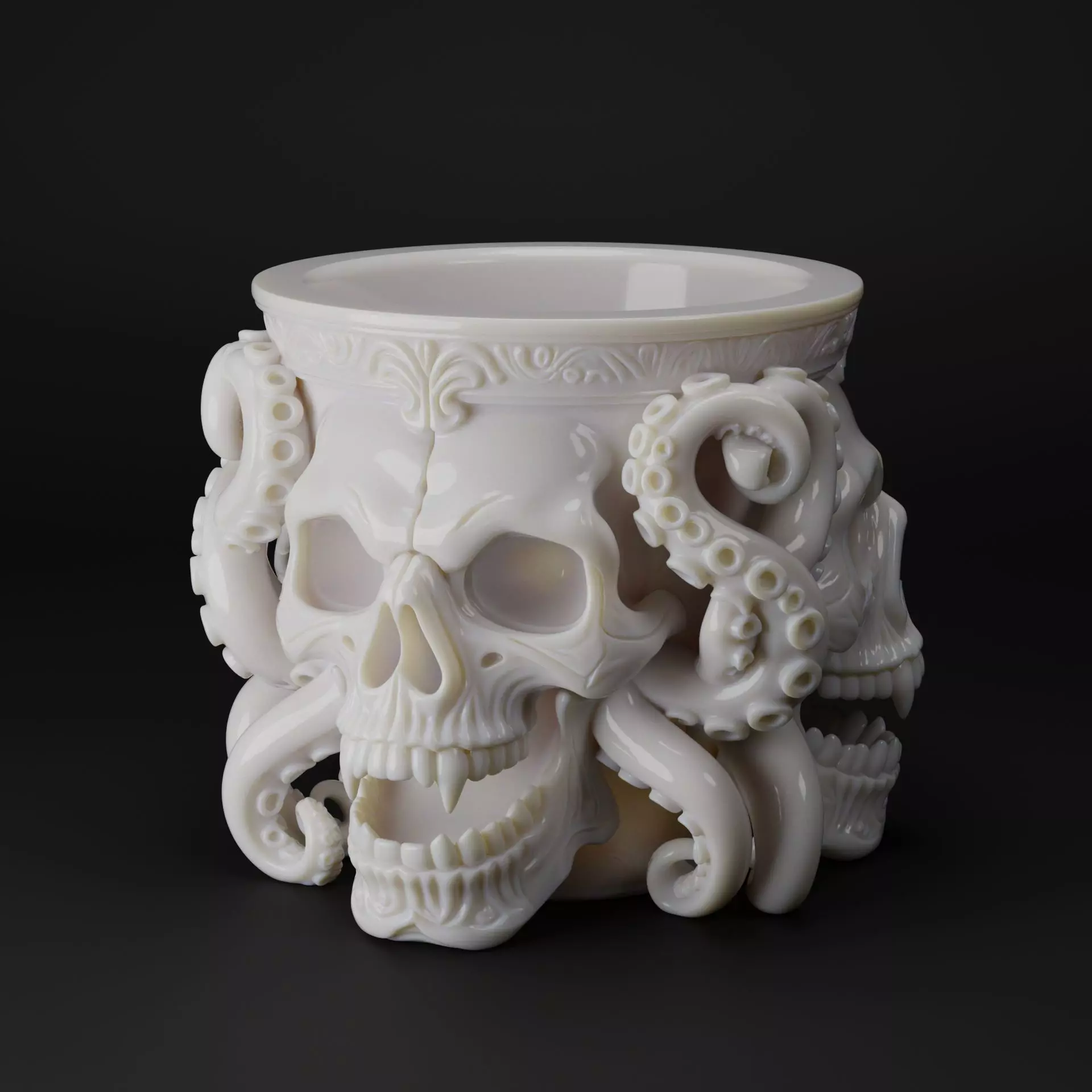 Bring dark fantasy energy into your space with this striking skull planter featuring detailed tentacle elements inspired by deep sea creatures and gothic aesthetics.