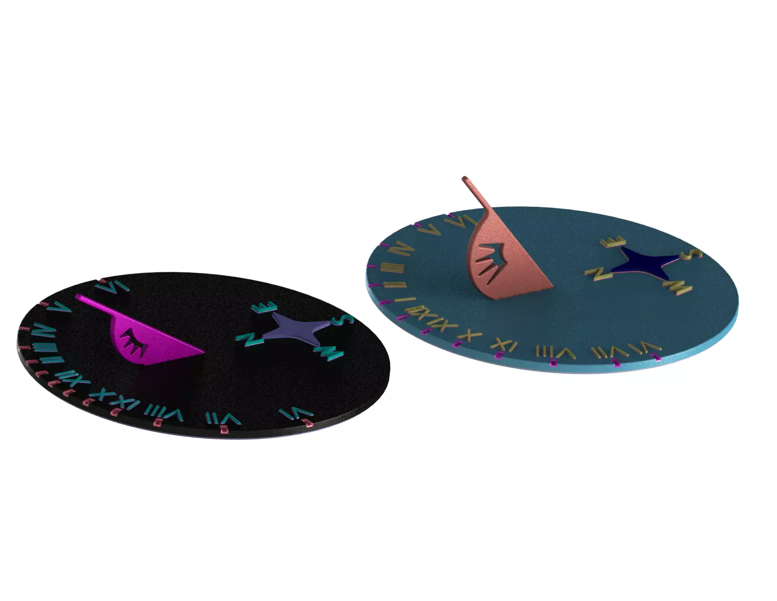 OverviewA meticulously engineered, fully functional sundial that blends ancient timekeeping with sleek, modern industrial design. Measuring a substantial 200mm in diameter, this model features a clean, uncluttered dial, elegant Roman numerals, and a precise compass rose. Whether you print it in classic bronze or go for a high-contrast Cyberpunk/Neon aesthetic with a color swap, it makes a stunning desktop piece or garden functional decor.