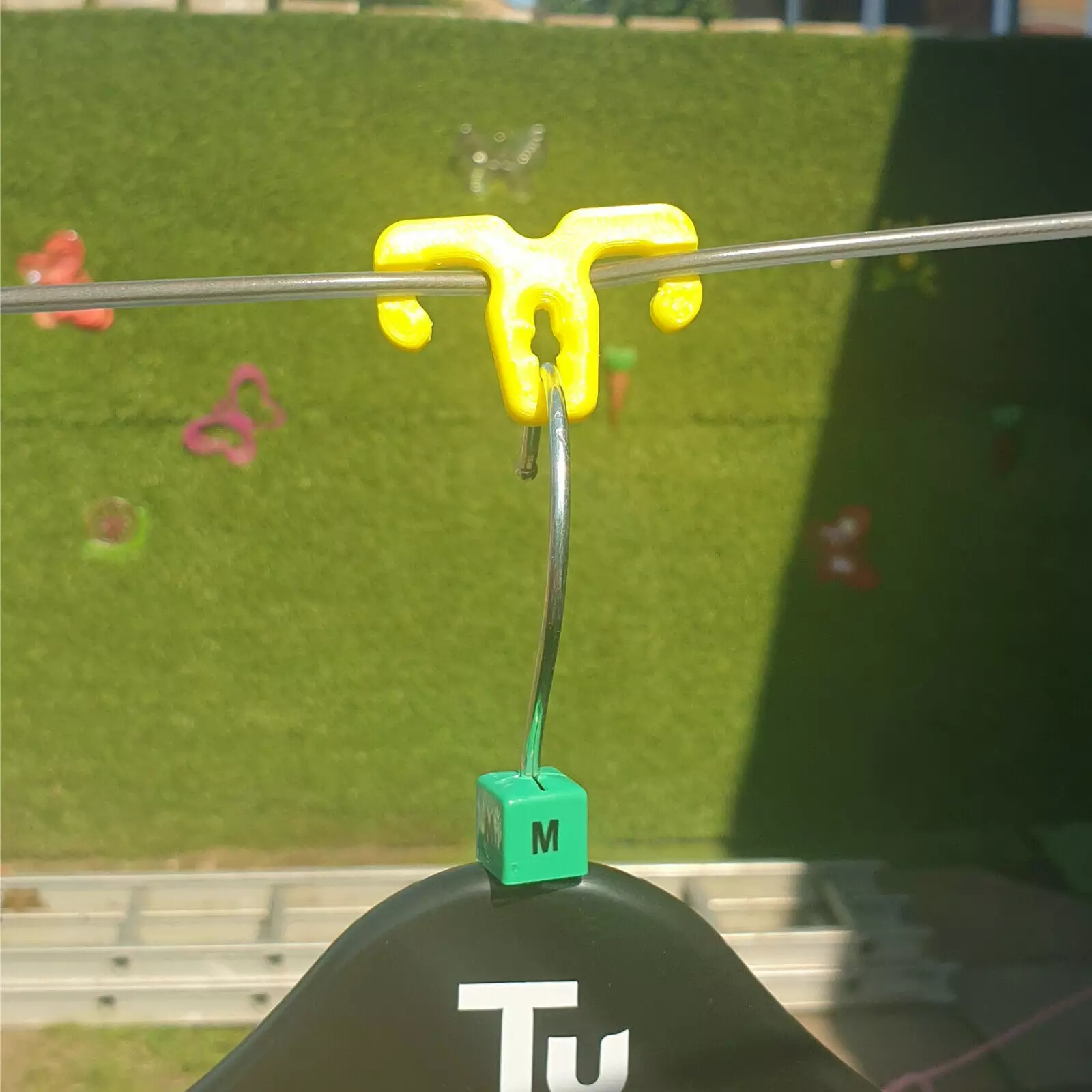 Model type: Functional household accessoryIntended use: Clothesline hanger retention clipPrinting compatibility: Suitable for most FDM 3D printersRecommended materials: PLA, PETG, or other standard printing filamentsDesigned for standard clothesline and coat hanger sizes