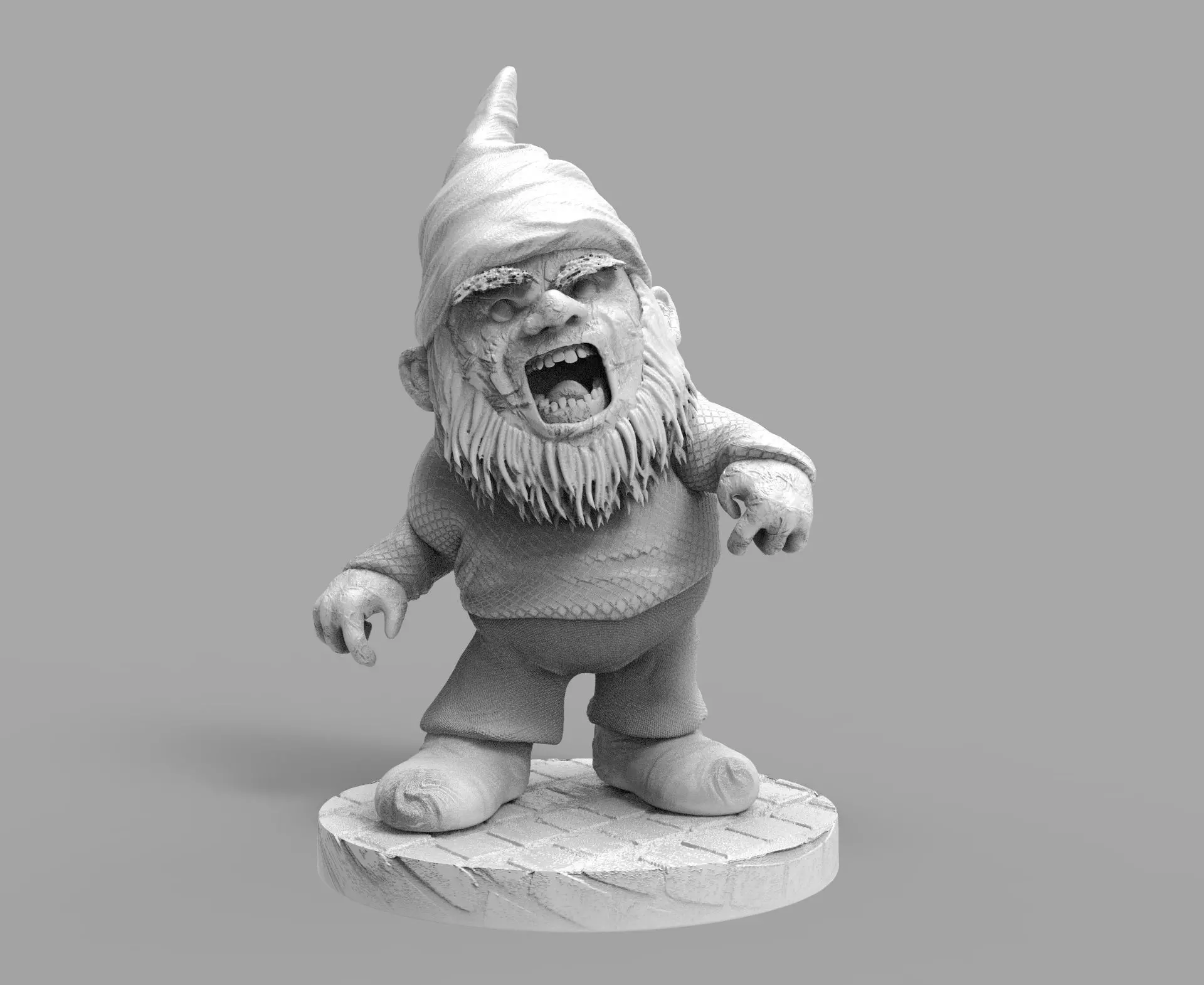 - High-poly detailed Zombie Evil Garden Gnome 3D Miniatures;
