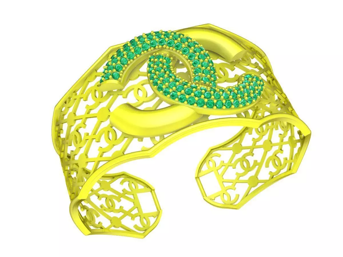 The open cuff construction provides a modern and adjustable aesthetic, suitable for statement jewelry collections. Delicate lattice details enhance visual complexity without adding unnecessary weight, making the model both bold and wearable.