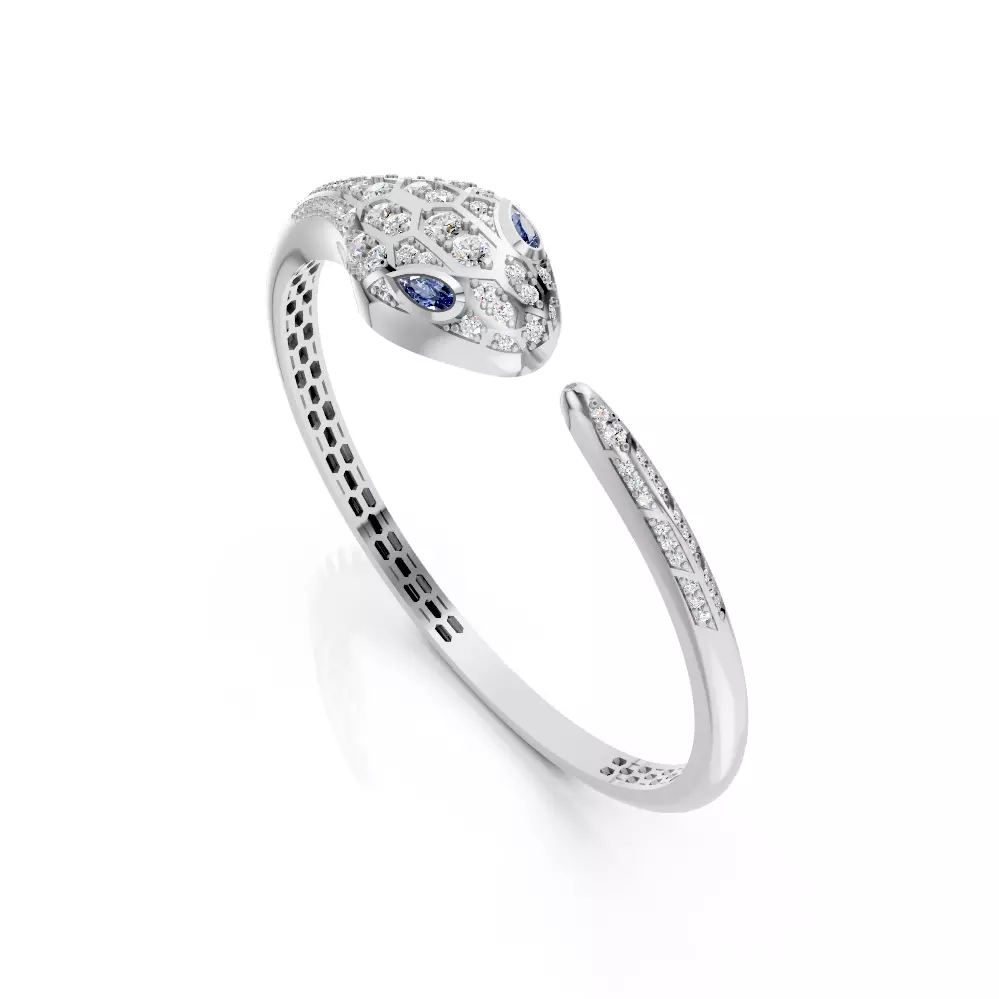 Articulated Bulgari Serpenti Seduttori bracelet in white gold diamonds and sapphires
