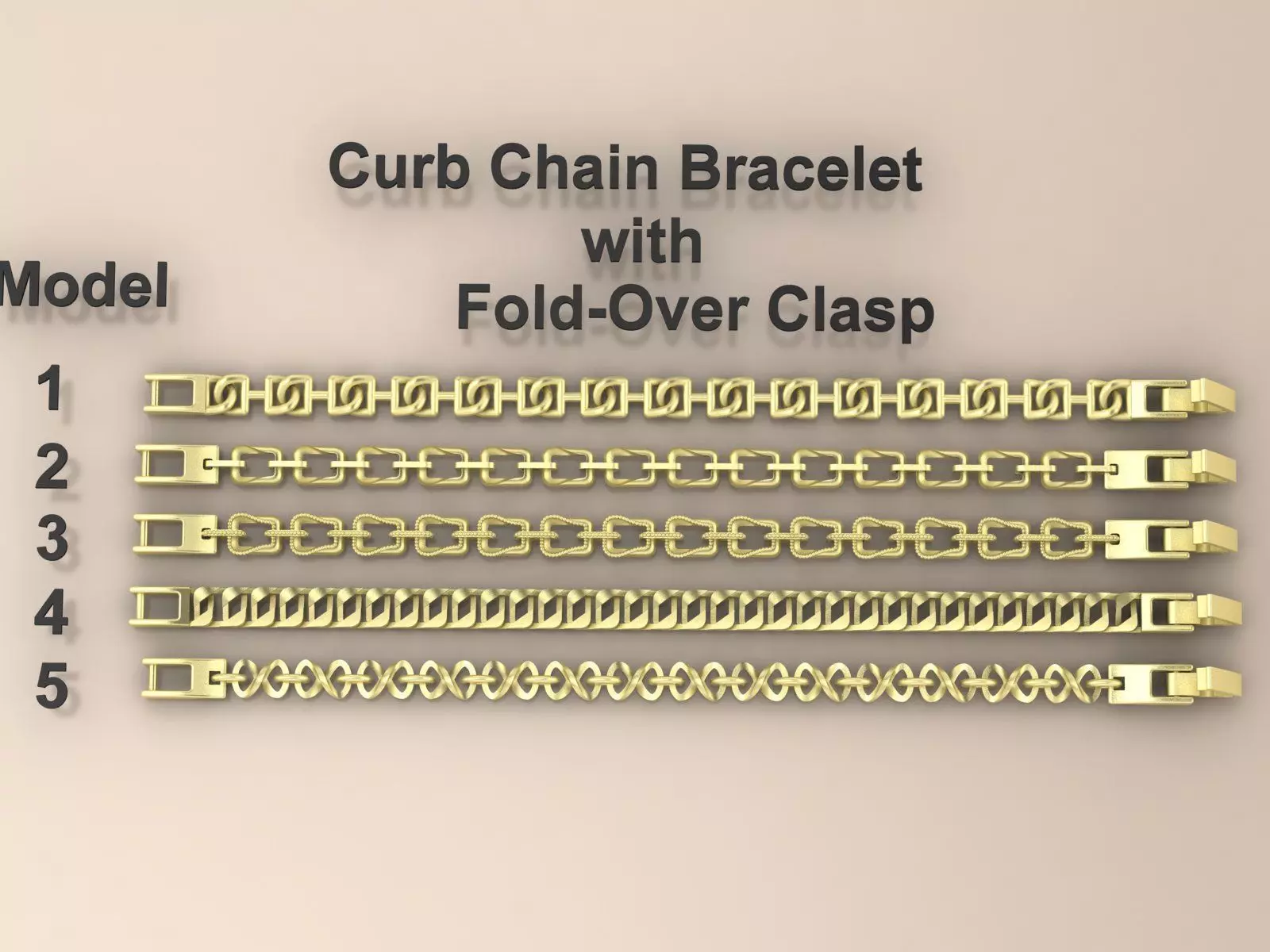This set includes 5 detailed curb chain bracelet models, each designed with a secure and elegant fold-over clasp.Every chain link is carefully proportioned (approx. 6×8 mm ) to create a balanced, realistic, and production-friendly design.