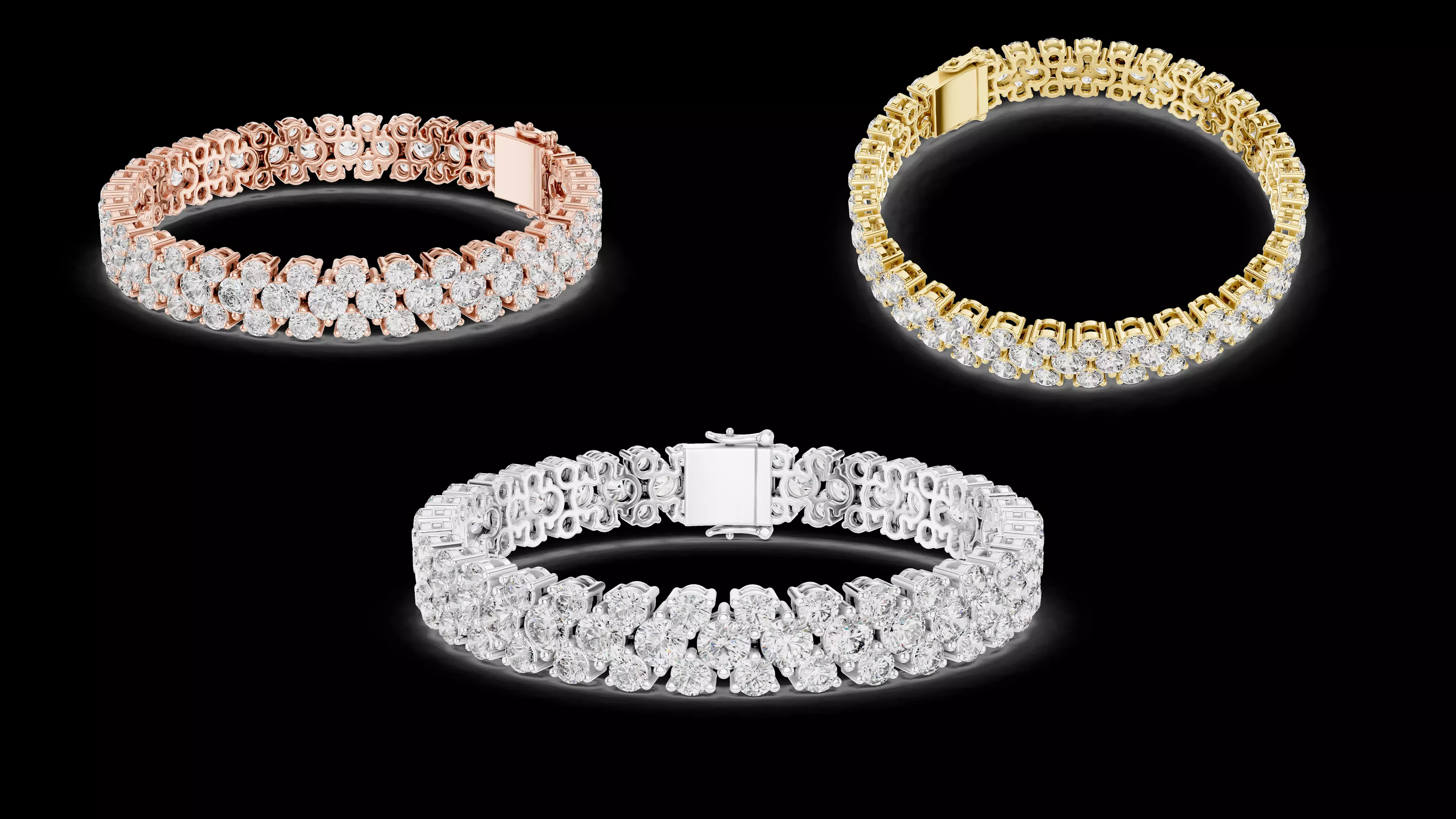 A bold and luxurious double-row diamond tennis bracelet featuring two continuous lines of brilliant round stones arranged in a staggered formation for enhanced sparkle and visual depth. This design offers a fuller, high-impact look while maintaining flexibility and structural balance.